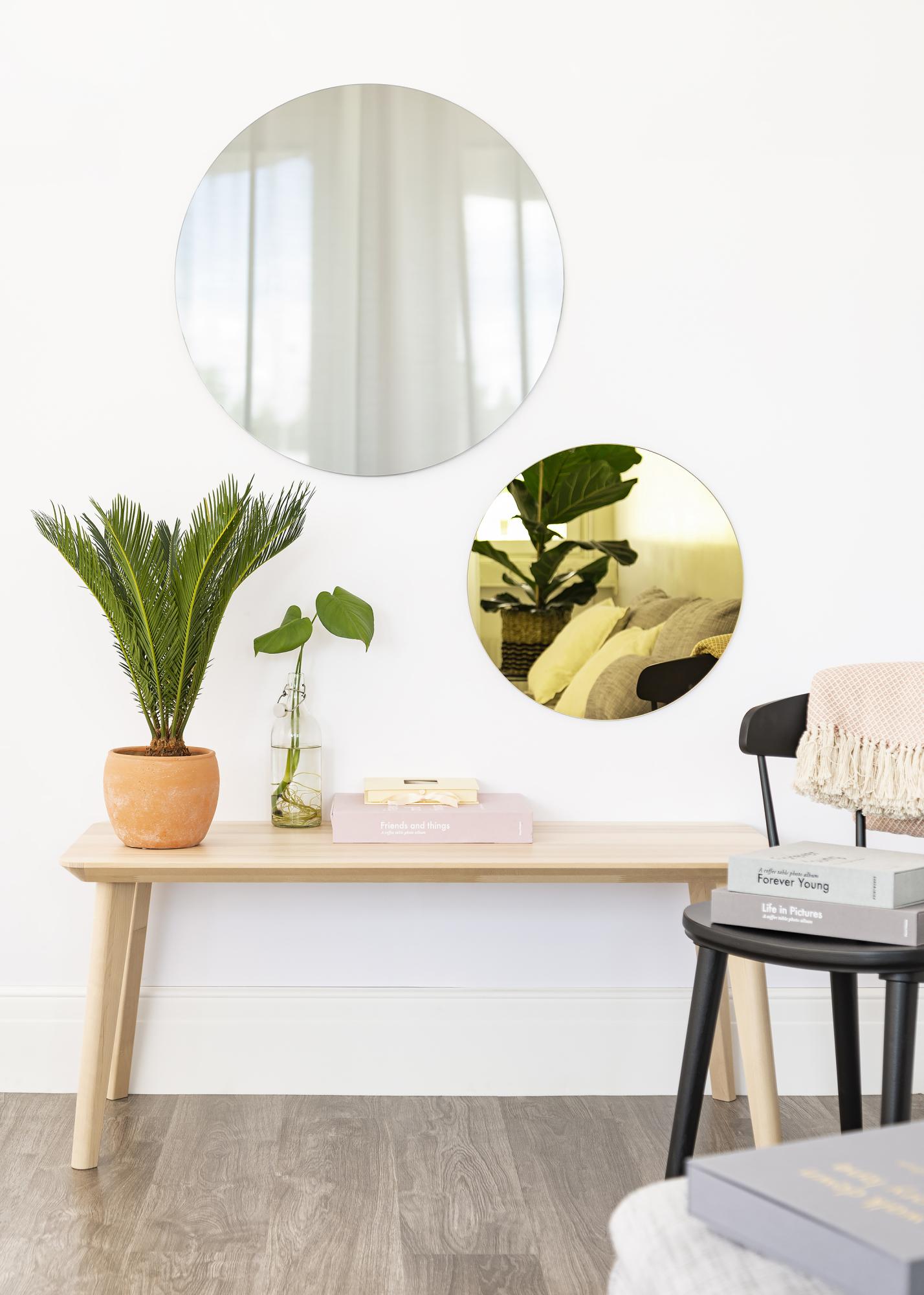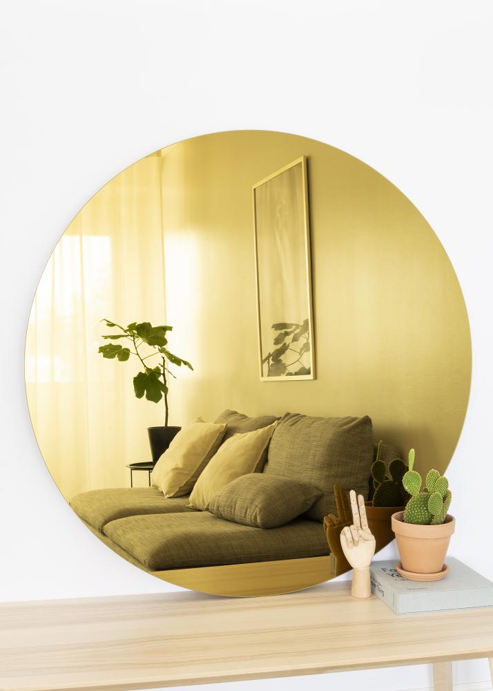 KAILA Specchio Rotondo Gold è un'elegante design al suo meglio! Lo specchio rotondo è sottile e non ha una cornice, e questa forma elegante combinata con il vetro specchiato dorato conferisce a questo specchio un aspetto esclusivo. Uno specchio rotondo come questo crea un'atmosfera morbida e accogliente nella tua casa, mentre il tocco moderno del vetro dorato testimonia un senso di stile e attenzione ai dettagli.