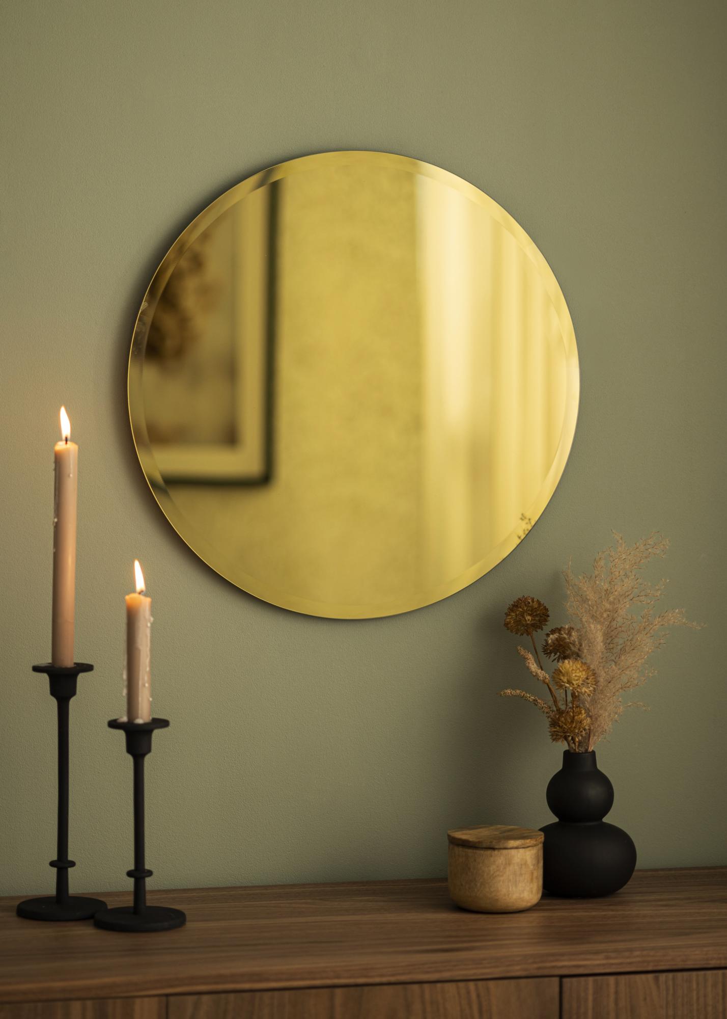 Aggiungi un tocco di lusso alla tua casa con Gold Deluxe! Questo specchio da parete ha una forma rotonda morbida e lastra di specchio esclusivamente dorato. Per accentuare ulteriormente la sensazione di lusso, lo specchio ha un'elegante bordatura sfaccettata.