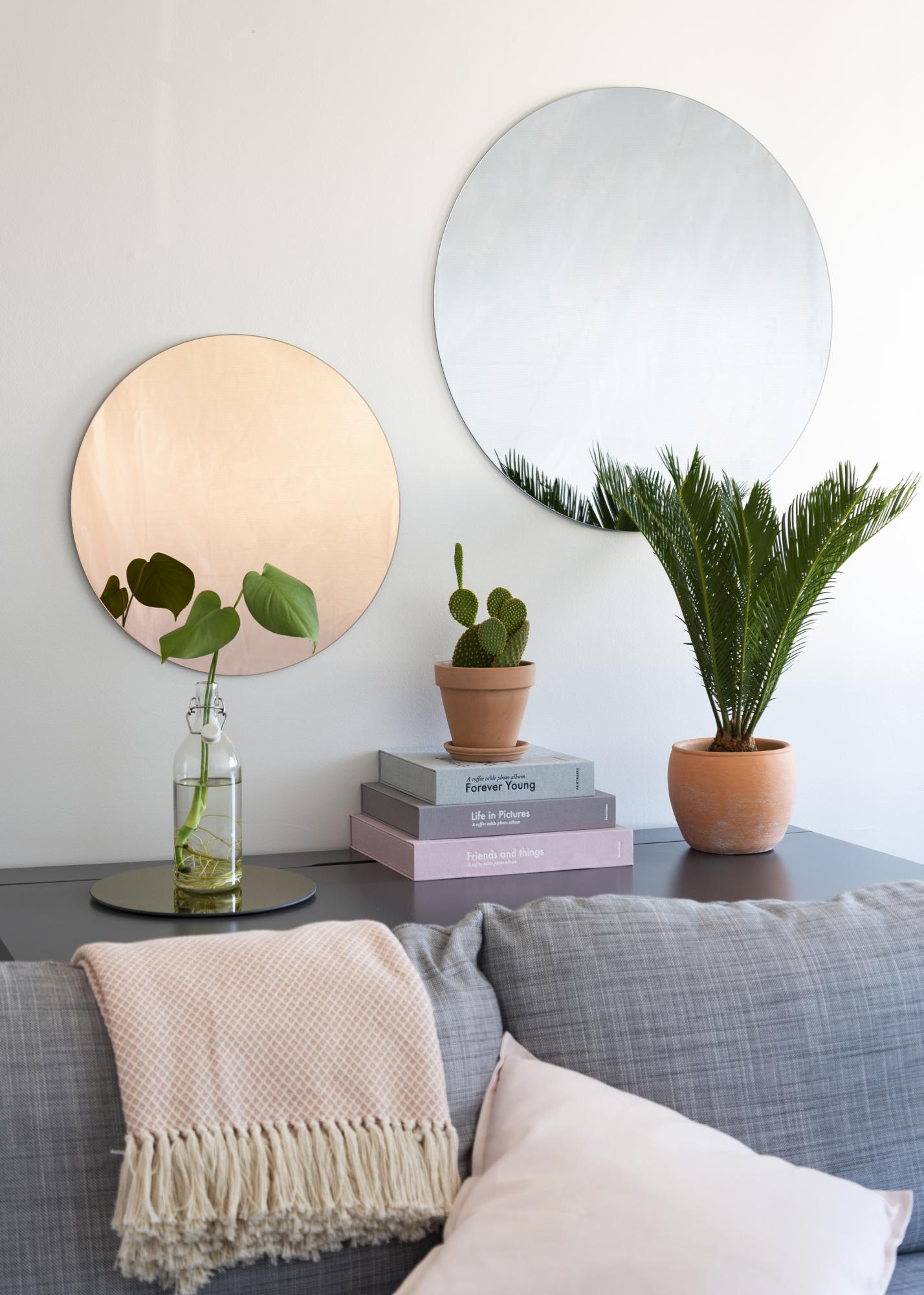 Lo specchio rotondo KAILA Rose Gold è disponibile in diverse dimensioni. Questo modello ha la generosa dimensione di 110 cm Ø.