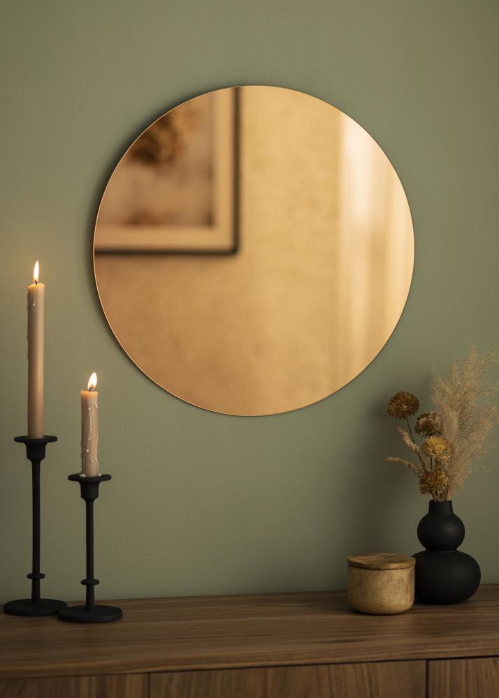 Lo specchio rotondo KAILA Rose Gold è disponibile in diverse dimensioni, di cui questo modello ha una dimensione di 50 cm Ø.