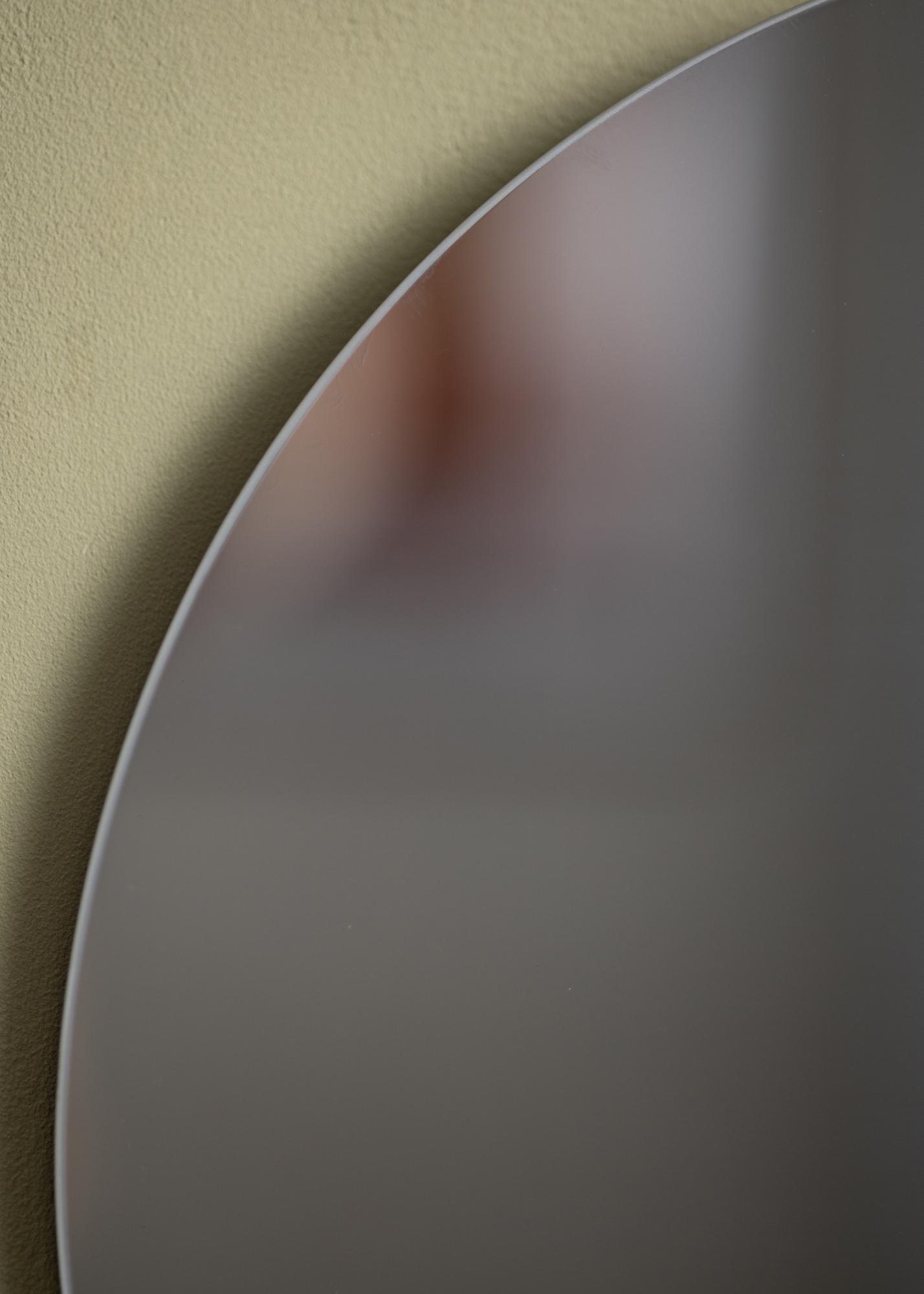 Questo è lo specchio rotondo e dal design pulito con quel tocco in più; un elegante e suggestivo vetro specchiato grigio. Questo, combinato con la forma essenziale dello specchio - sottile e senza cornice - crea un insieme molto raffinato. La forma rotonda e morbida in contrasto con il freddo grigio è anche un aspetto di stile di questo elegante specchio da parete.