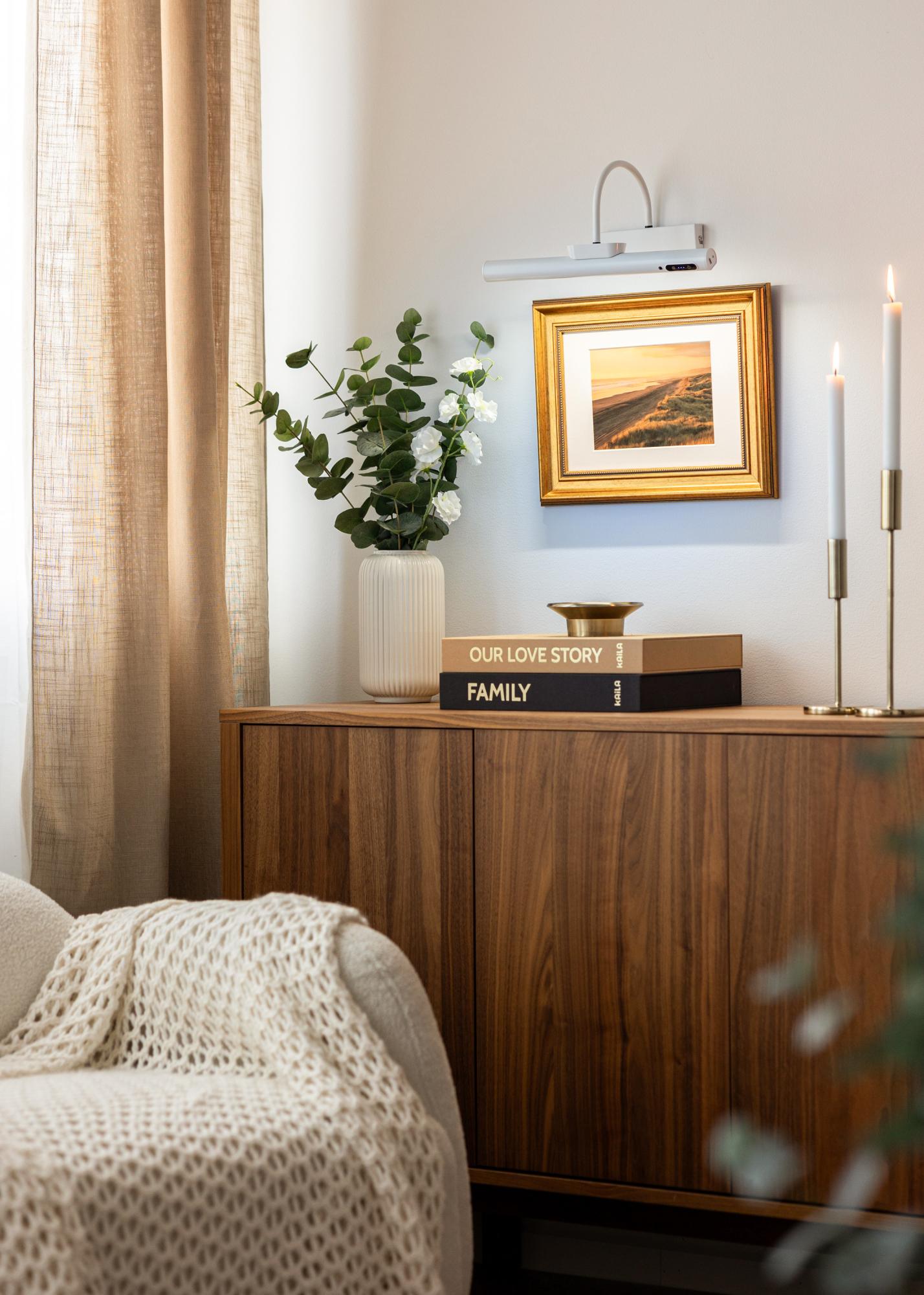 Questa illuminazione per quadri a batteria con design bianco è sia pratica che elegante. Con la possibilità di evitare cavi visibili, puoi posizionarla esattamente dove è necessaria per mettere in risalto le tue opere d'arte nel miglior modo possibile. L'illuminazione ha una fonte di luce LED che fornisce una luce piacevole e che può essere regolata in tre diverse temperature di colore (3000K, 4000K, 6000K), a seconda di ciò che si adatta meglio alla tua opera d'arte e all'ambiente.