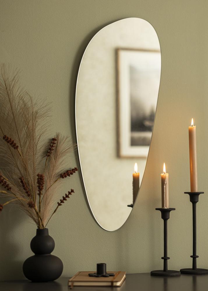 Questo specchio da parete è minimalismo allo stato dell'arte - con un design senza cornice e una forma asimmetrica e sottile. Lo spessore del vetro dello specchio, di soli 4 mm, amplifica ulteriormente la sensazione minimalista e pulita.