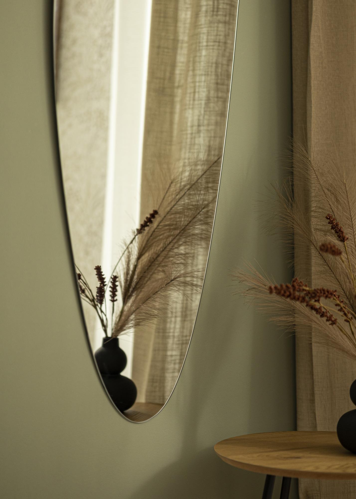 Questo specchio da parete è minimalismo allo stato dell'arte - con un design senza cornice e una forma asimmetrica e sottile. Lo spessore dello specchio, di soli 4 mm, amplifica ulteriormente la sensazione minimalista e pulita.