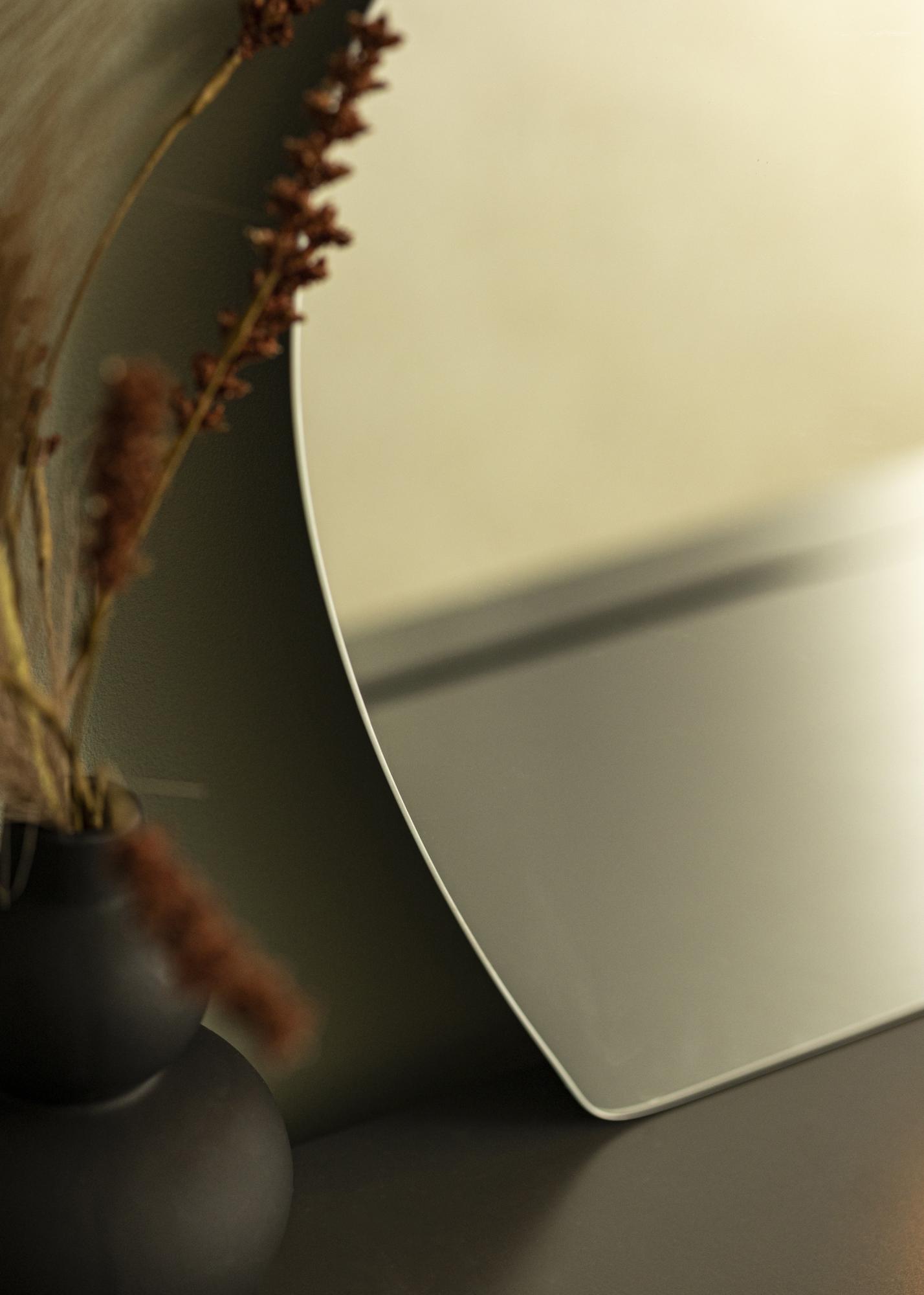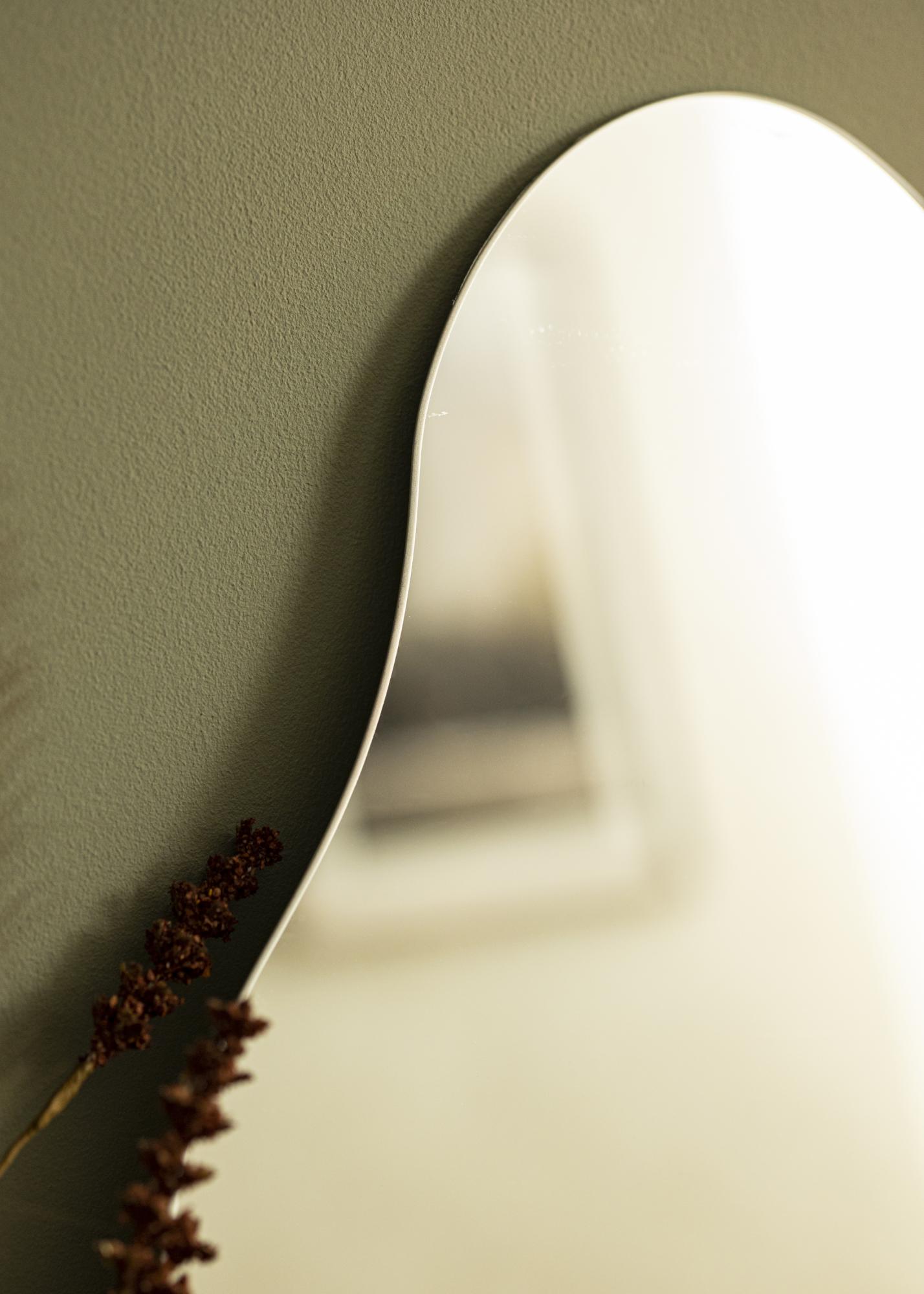 Questo specchio da parete offre eleganza e giocosità, con una forma ondulata che conferisce allo specchio il suo aspetto unico. Il bordo inferiore è dritto, il che rende lo specchio adatto per essere posizionato in verticale su un mobile appoggiato al muro. Naturalmente, è anche possibile montare lo specchio sul muro!