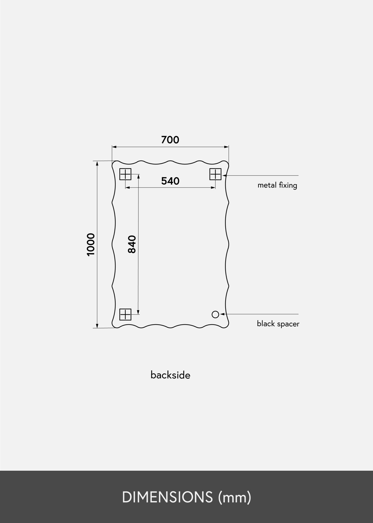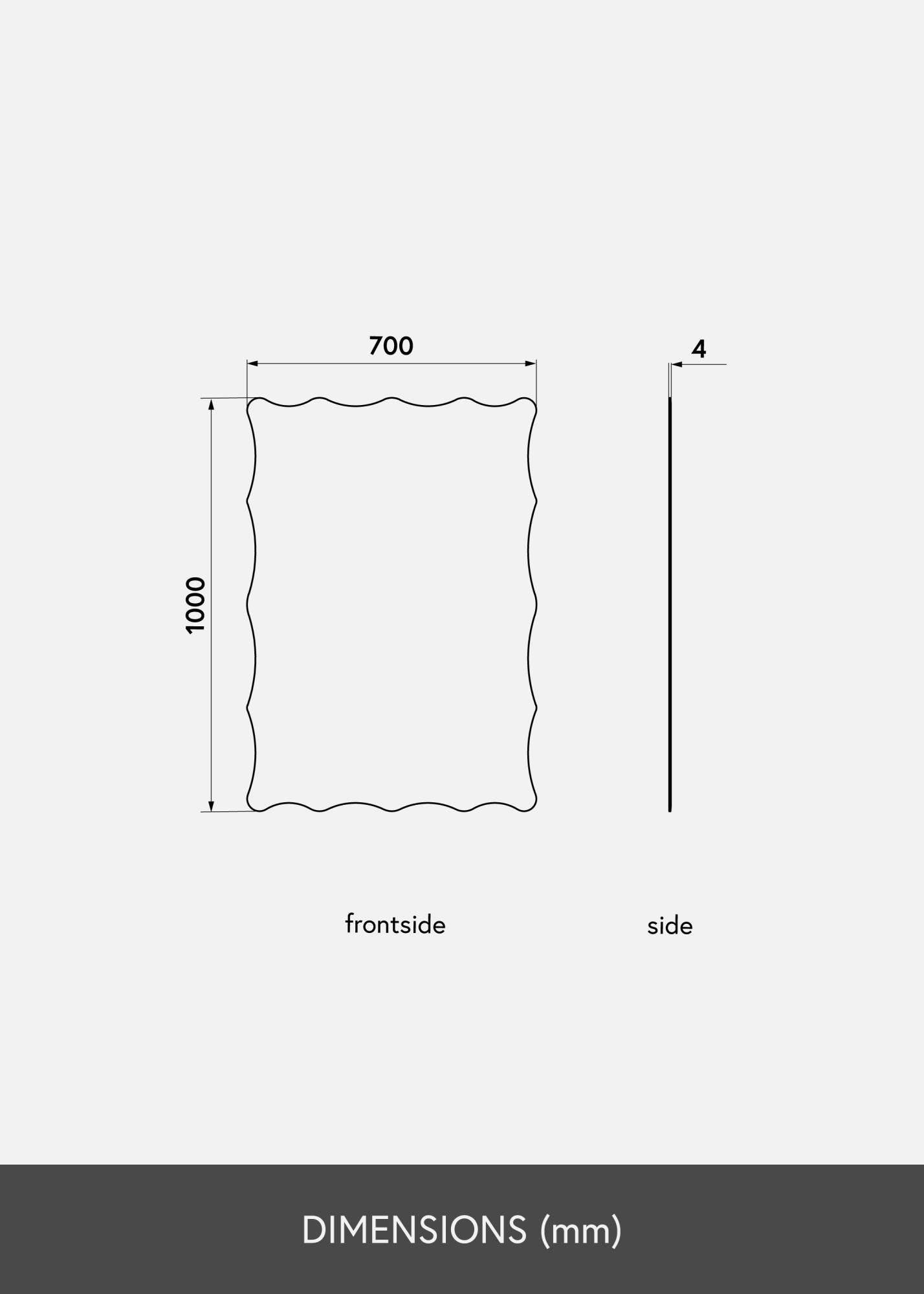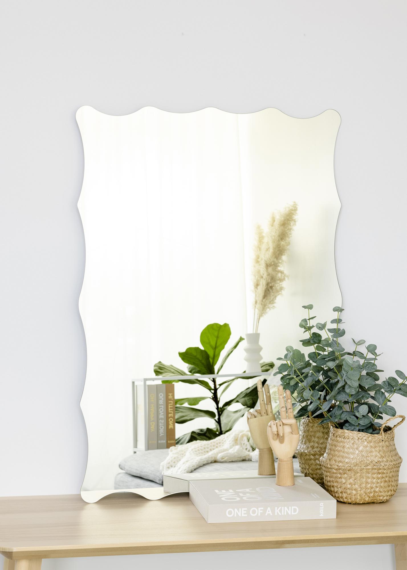 Specchio di KAILA, con una bellissima forma ondulata per un'impressione extra elegante. Questo specchio da parete è un perfetto dettaglio d'arredo per la camera da letto o il soggiorno grazie al suo design senza tempo. Lo specchio ha una finitura classica con vetro specchiato sottile e trasparente e un supporto da parete che permette un facile montaggio. Questo specchio ha una dimensione di 70x100 cm.