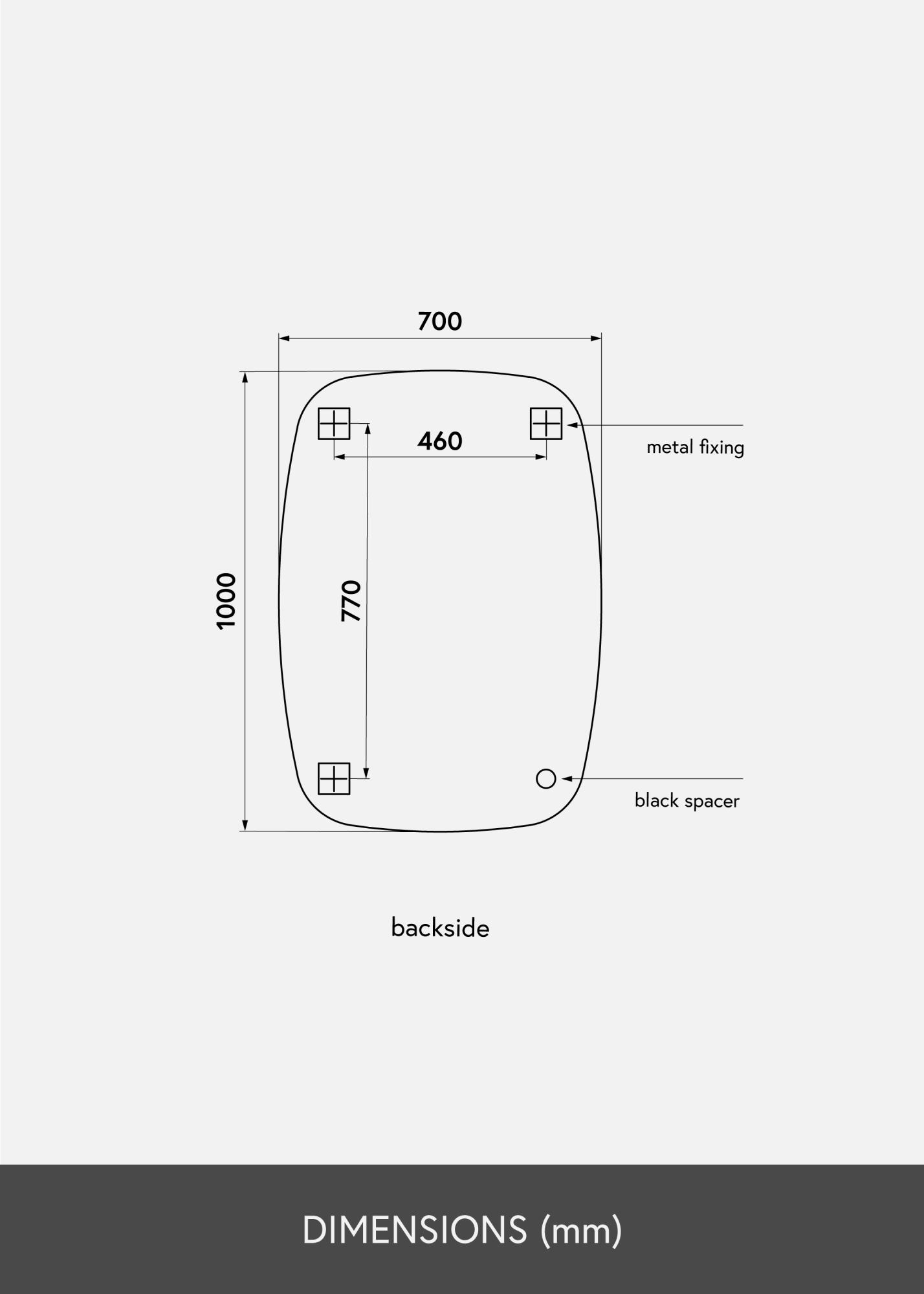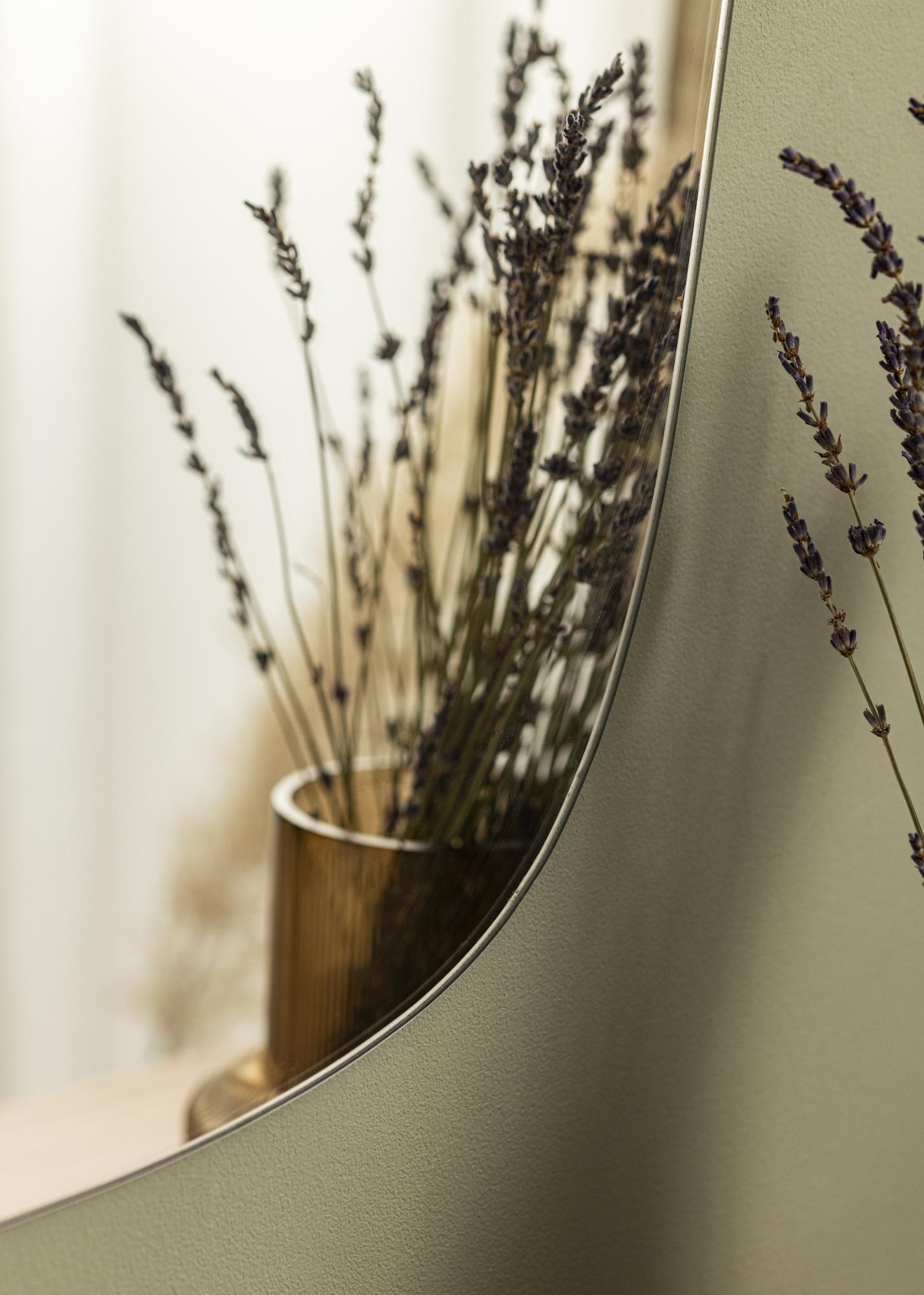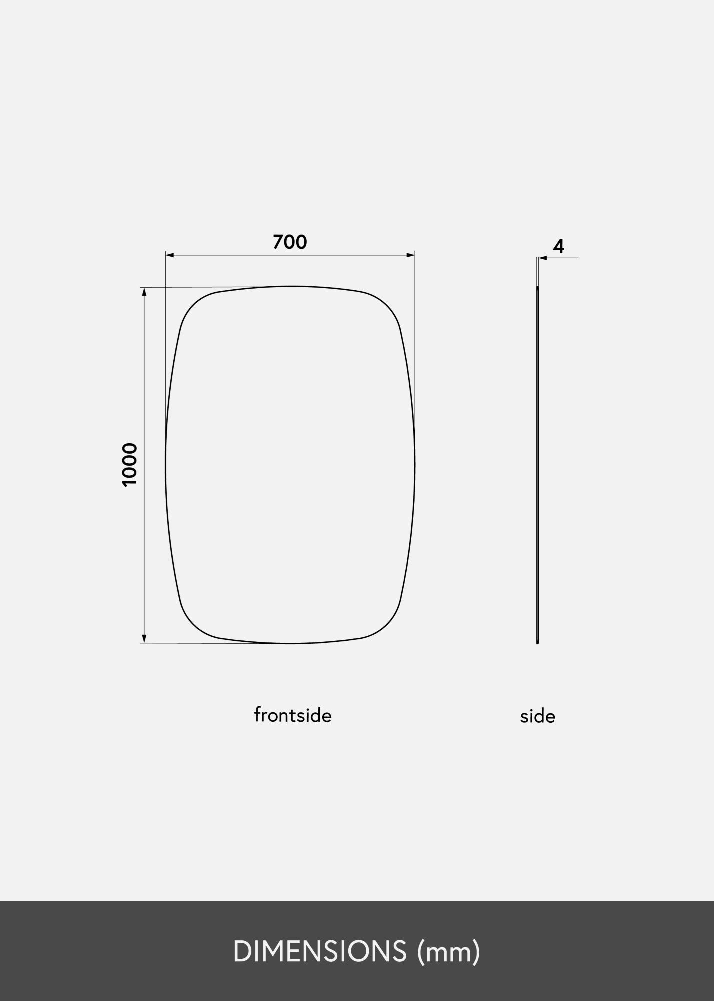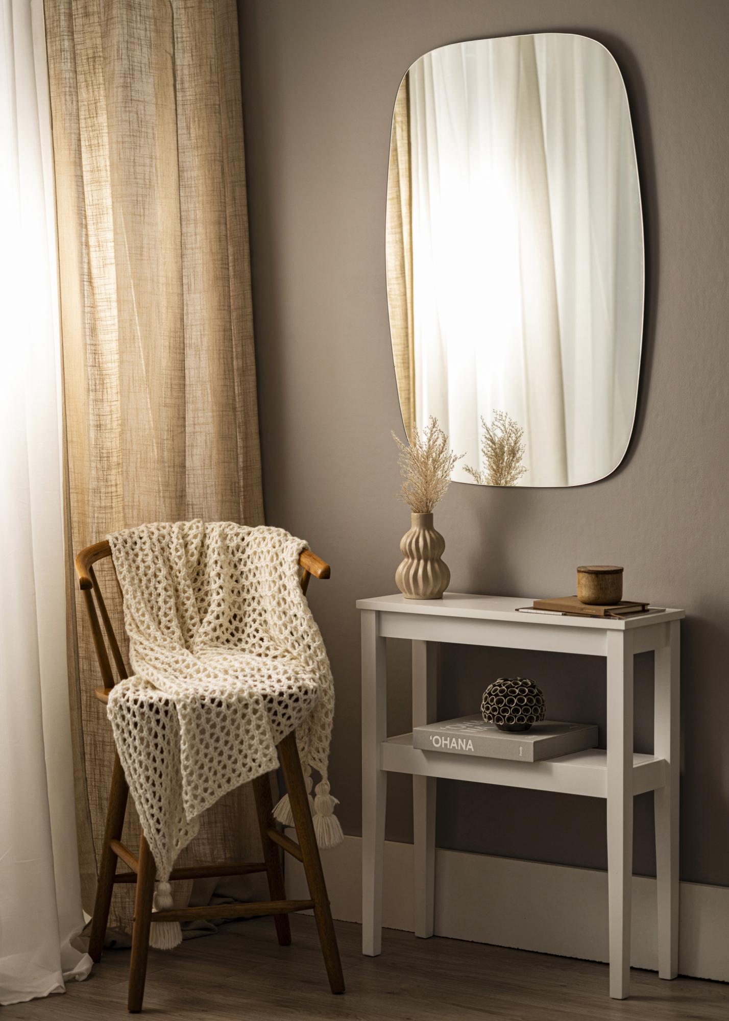 Bellissimo specchio di KAILA, con angoli arrotondati e forma laterale curva che crea un'eleganza incredibile. Lo specchio è sottile e incolore e non è dotato di alcuna cornice, il che accentua la sensazione minimalista deliziosa. L'elegante aspetto fa sì che lo specchio da parete si adatti perfettamente a ogni casa. Grazie al pratico supporto a parete, puoi fissare lo specchio al muro. Lo specchio misura 70x100 cm.