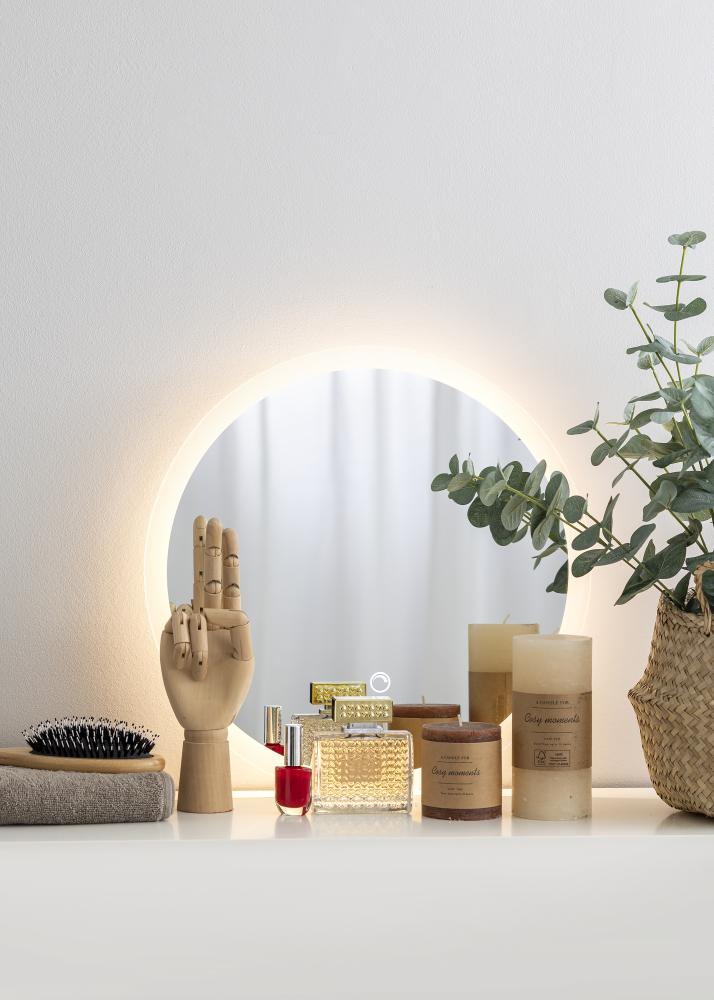LED è una fonte di luce a basso consumo energetico che fornisce una luce uniforme e naturale - il che rende questo specchio perfetto come specchio da bagno e specchio per il trucco, o perché no, come specchio per l'ingresso! L'elegante specchio ha un diametro di 40 cm ed è spesso solo 3 cm.