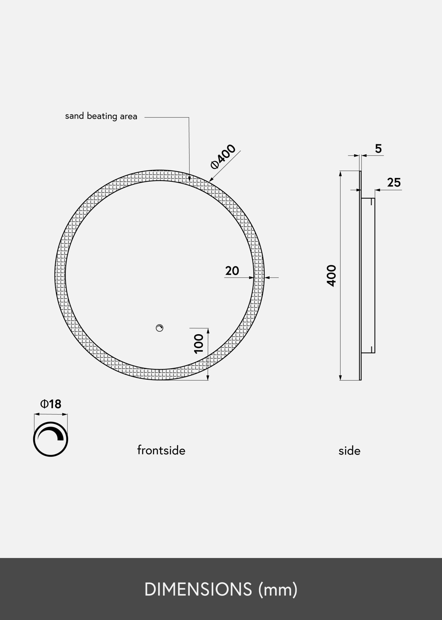 Questo è un classico e elegante specchio da bagno rotondo. Lo specchio è incorniciato da un bordo opaco con illuminazione a LED integrata. La luce si accende dietro lo specchio e crea una piacevole luce bianco caldo in avanti a 3000K. La luce è dimmerabile e puoi facilmente regolare l'intensità della luce tenendo premuto il pulsante per alcuni secondi. La prossima volta che accendi la luce, lo specchio ricorderà l'intensità luminosa impostata. Lo specchio ha dei supporti da parete inclusi ed è approvato per il bagno. Lo specchio da bagno è destinato all'installazione fissa e viene collegato a un interruttore. Per far funzionare correttamente lo specchio, deve essere collegato a un interruttore normale, non a un dimmer.