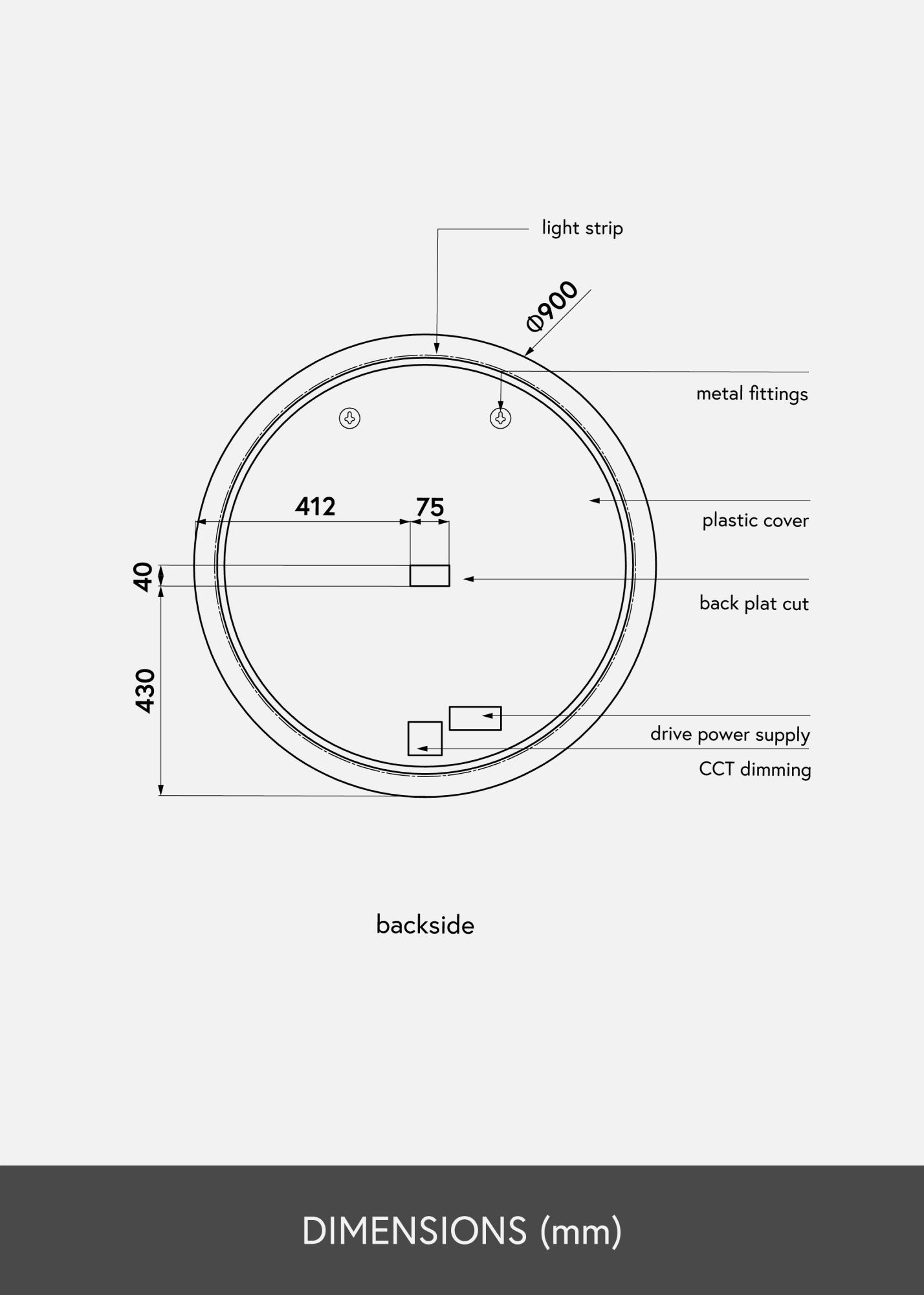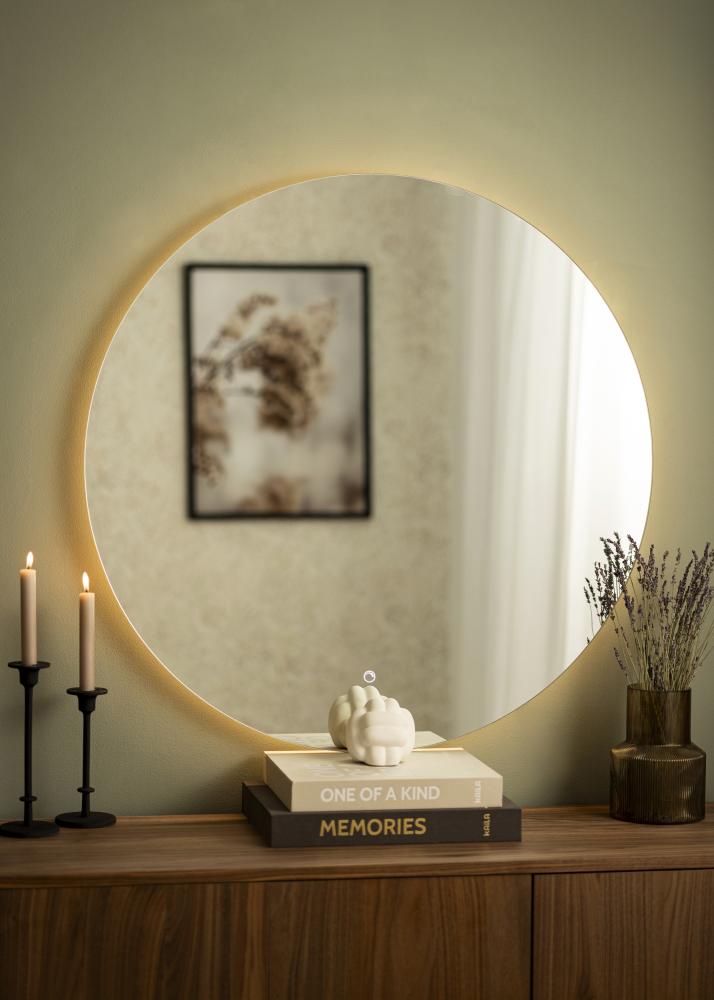 Lo specchio è approvato per il bagno, ma il suo design senza tempo ed elegante si adatta anche bene ad altre pareti della casa. Lo specchio ha un diametro di 90 cm, è solo 3 cm di profondità e ha supporti da parete. Lo specchio è destinato all'installazione fissa e viene collegato a un interruttore. Per far funzionare correttamente lo specchio, deve essere collegato a un interruttore normale, non a un dimmer.