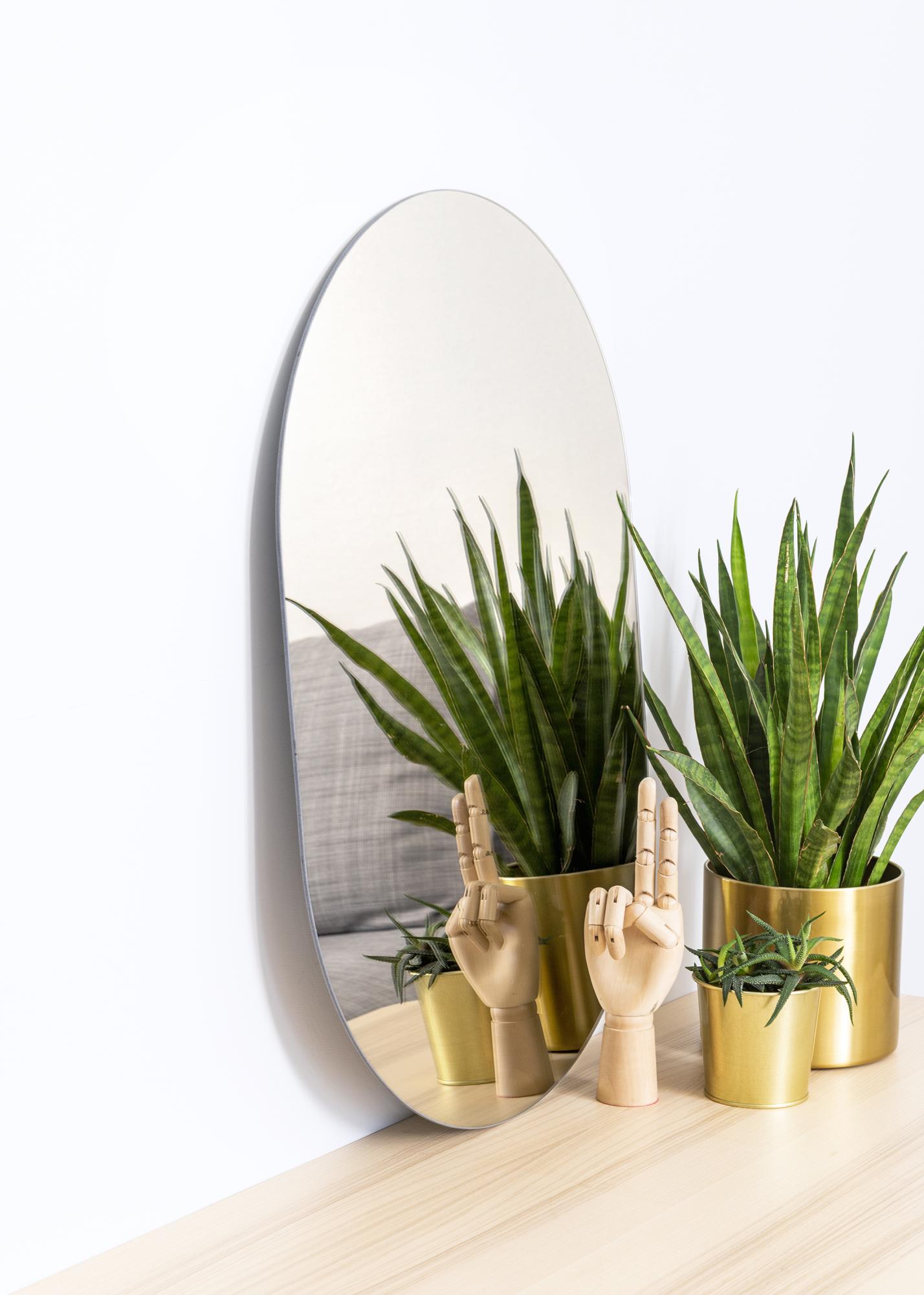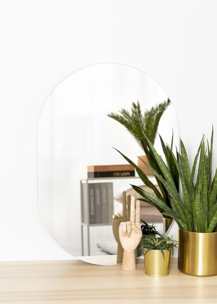 Con uno specchio ovale come questo, crei un'atmosfera morbida e accogliente nella tua casa. Questo specchio è spesso solo 4 mm, il che, combinato con la forma morbida, porta ad uno specchio da parete molto elegante. È uno specchio con un design moderno e senza tempo, adatto sia per arredamenti trendy che classici.