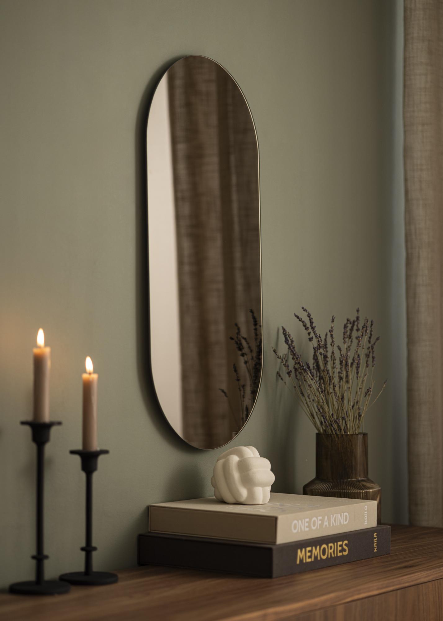 Uno specchio ovale dona morbidezza ed eleganza alla tua casa. Questo specchio ovale ha una tonalità di bronzo scuro molto elegante. Questo dettaglio di effetto e di tendenza si combina con un design sottile in quanto e non ha una cornice. Il risultato è un dettaglio d'arredo moderno, elegante e accattivante da posizionare in qualsiasi stanza in cui si desidera aggiungere funzionalità e design nordico di tendenza!