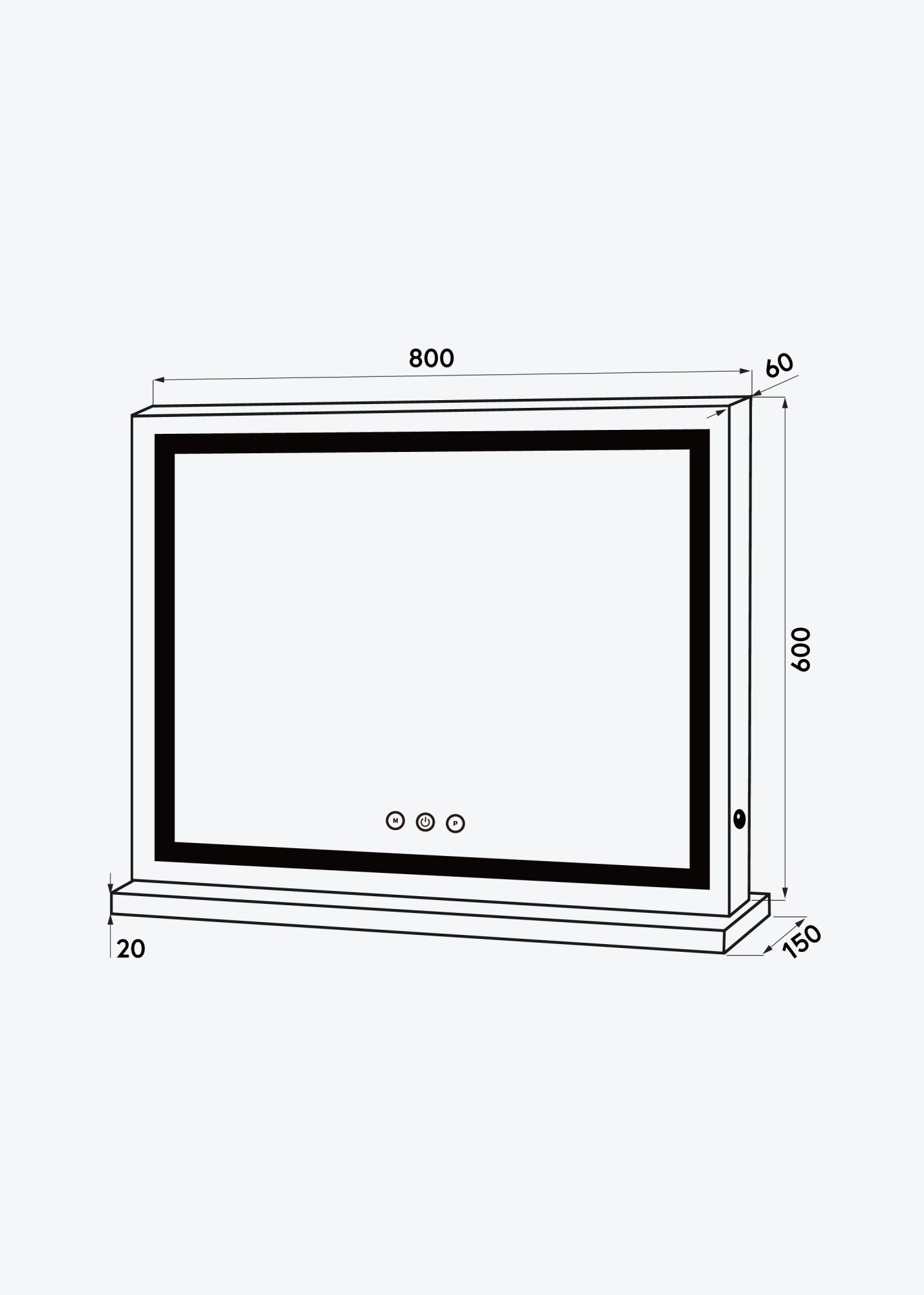 Lo specchio ha una luce piacevole a 3000K-6000K e puoi accendere facilmente l'illuminazione con il pulsante touch integrato sul fronte dello specchio. Ci sono anche pulsanti touch per regolare la luminosità e la temperatura del colore, dove il pulsante "P" regola la luminosità e il pulsante "M" imposta la temperatura del colore. L'alimentazione avviene tramite una presa.