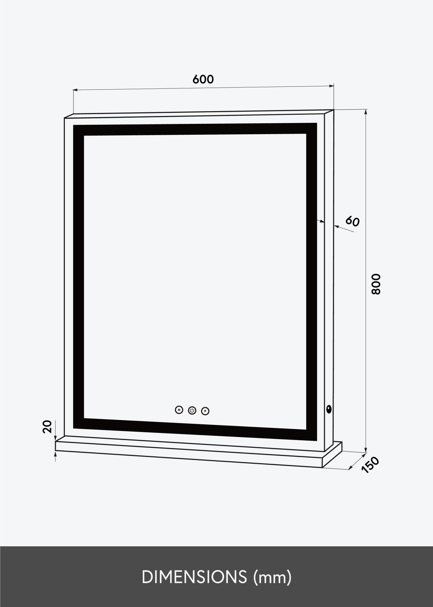 Questo specchio per il trucco è una perfetta combinazione di minimalismo e tendenza. Ha una forma classica e una moderna striscia LED che crea una cornice intorno alla superficie dello specchio di 80x60 cm. Lo specchio ha un supporto che può essere rimosso, in modo da poter scegliere se posizionare lo specchio su un tavolo o appenderlo al muro. Viene montato in posizione verticale.