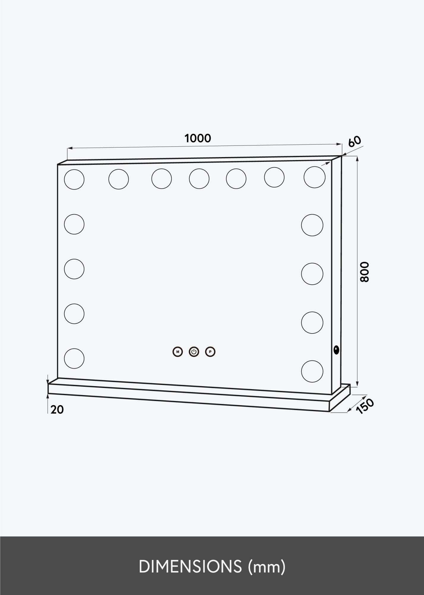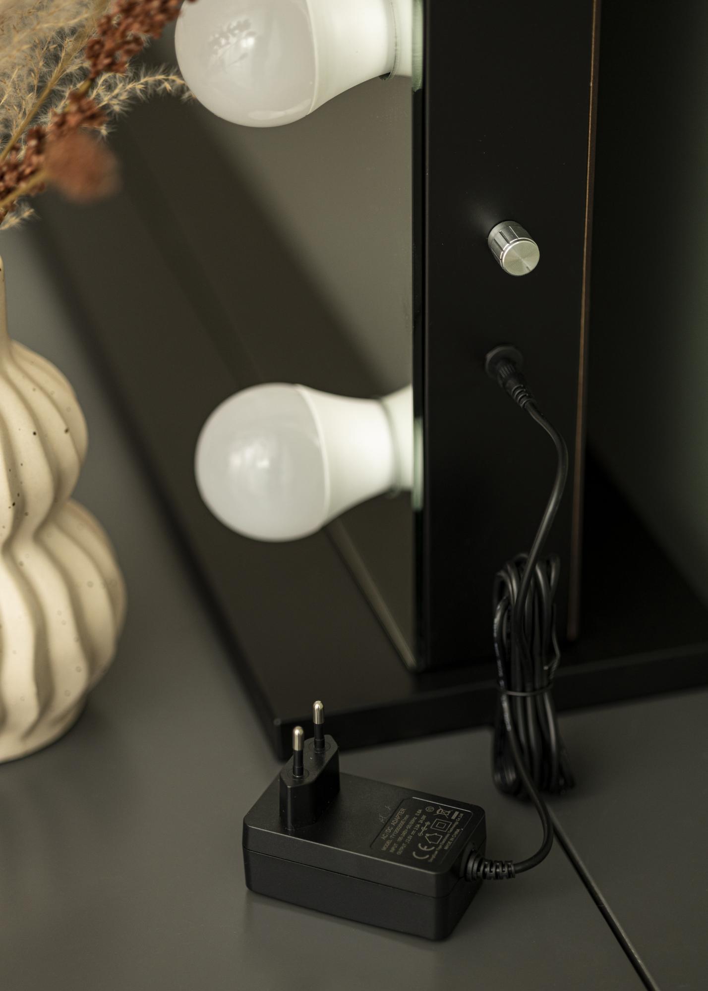 Con uno specchio per il trucco di dimensioni più grandi, puoi aggiungere sia stile che funzionalità alla camera da letto o al soggiorno. Questo specchio ha una superficie riflettente di 100x80 cm, incorniciata splendidamente da 15 lampadine con attacco E27. Il design elegante, con una forma rettangolare classica e le lampade lungo i lati dello specchio, ricorda l'affascinante Hollywood. Le lampadine emettono una luce bianca fredda. L'illuminazione può essere facilmente regolata alla luminosità desiderata utilizzando la manopola sul lato dello specchio.