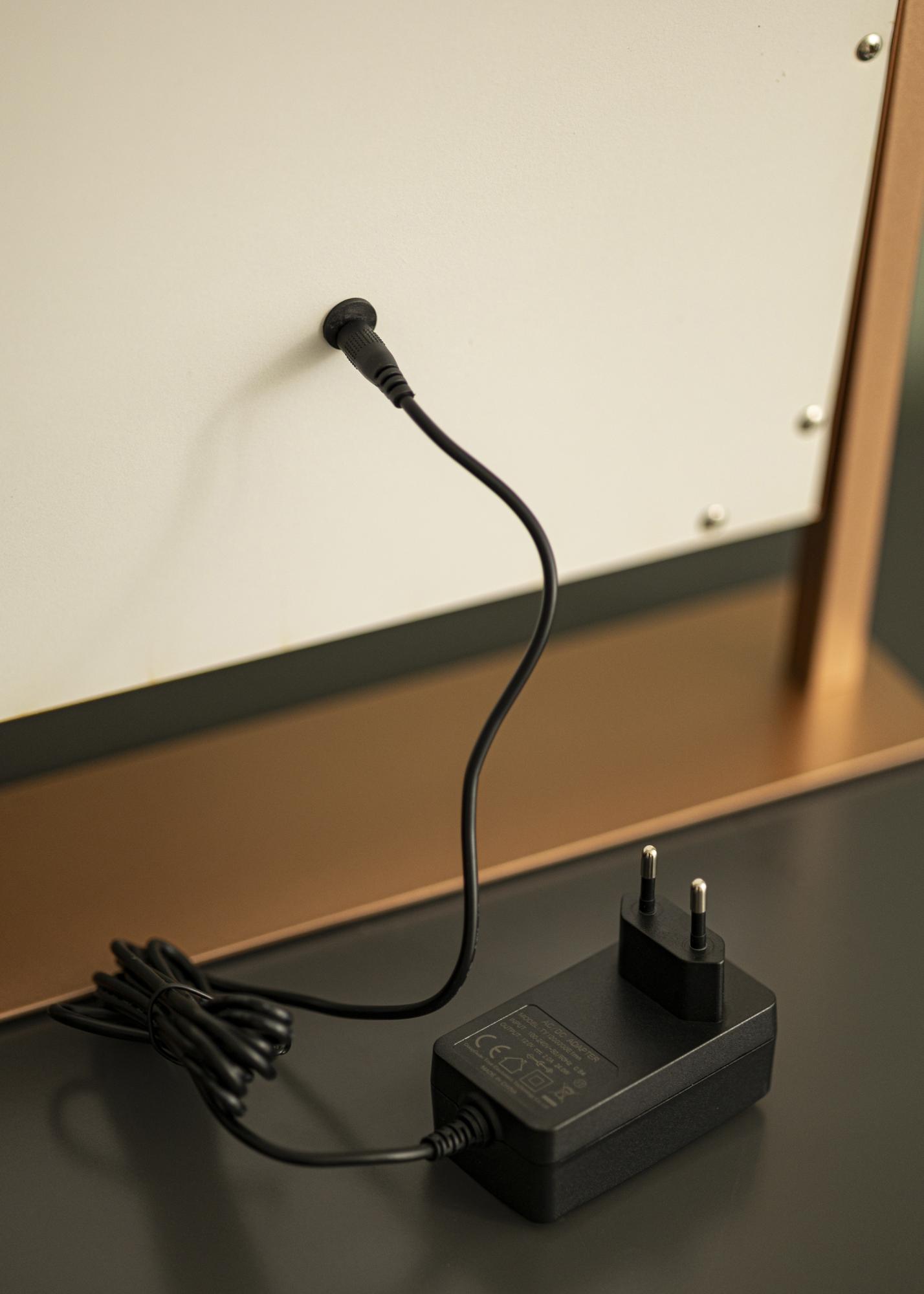 Uno specchio elegante con illuminazione diventa sia un trendy dettaglio d'arredo che un perfetto aiuto quando applichi il tuo trucco al mattino. Questo è un modello con una sofisticata struttura metallica in tonalità di oro rosa e una striscia LED integrata che incornicia la superficie dello specchio. Puoi accendere e spegnere l'illuminazione quando vuoi e regolare la luce secondo i tuoi gusti - tutto grazie ai pulsanti touch nella parte inferiore dello specchio. C'è un classico pulsante on/off così come un pulsante per regolare la luminosità (contrassegnato con "P") e un pulsante per impostare la temperatura del colore della luce (contrassegnato con "M"). Puoi scegliere tra luce calda, fredda e naturale.