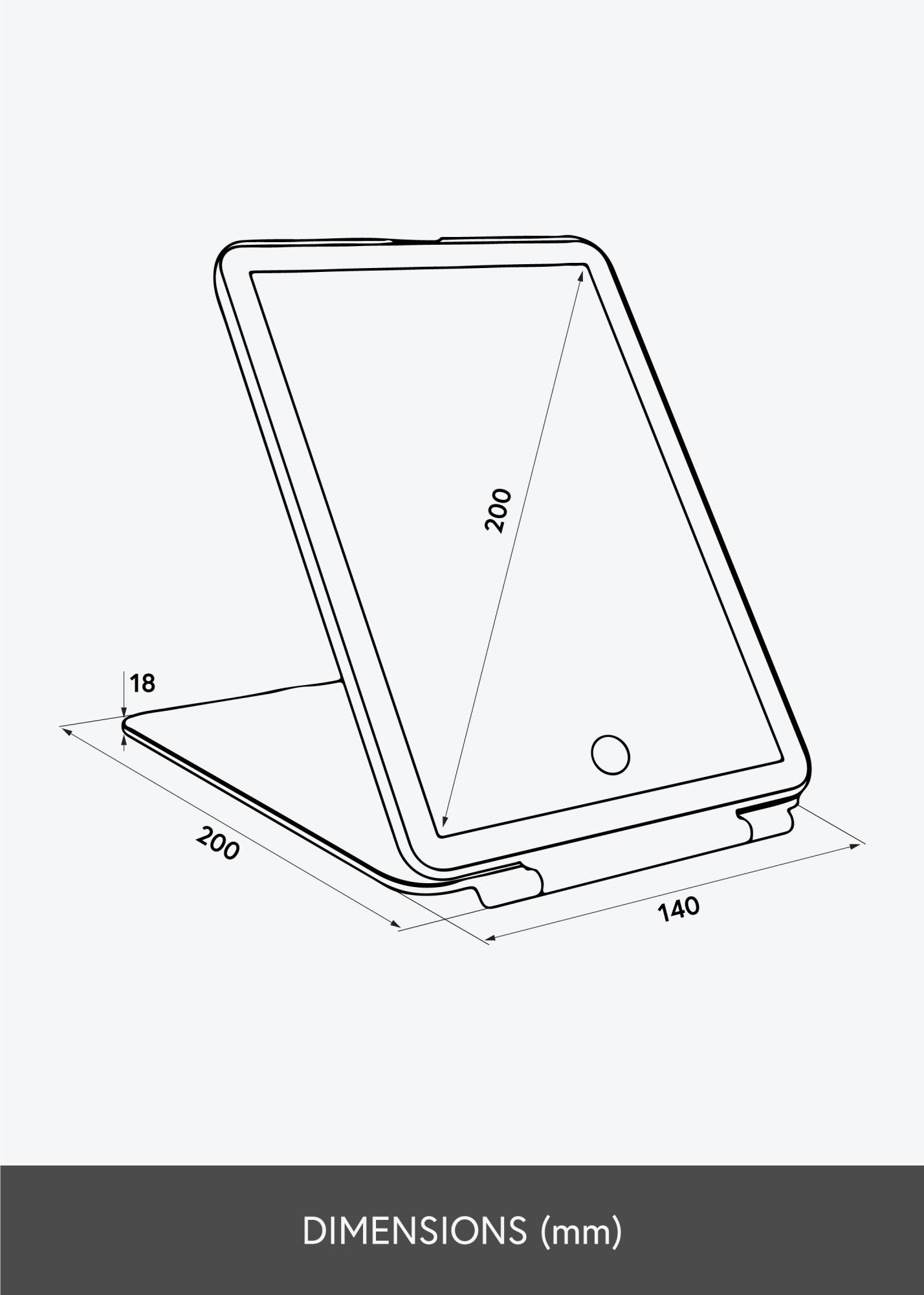 Bello, compatto e leggero - questo specchio per il trucco ha tutto ciò di cui hai bisogno quando sei in movimento. Il formato compatto, con una superficie specchiante di 14x20 cm, lo rende facile da portare nella borsa in ogni occasione. Lo specchio per il trucco ha un design pieghevole che protegge la superficie specchiante dalla polvere quando non viene utilizzato e, in posizione aperta, puoi inclinare lo specchio come desideri.
