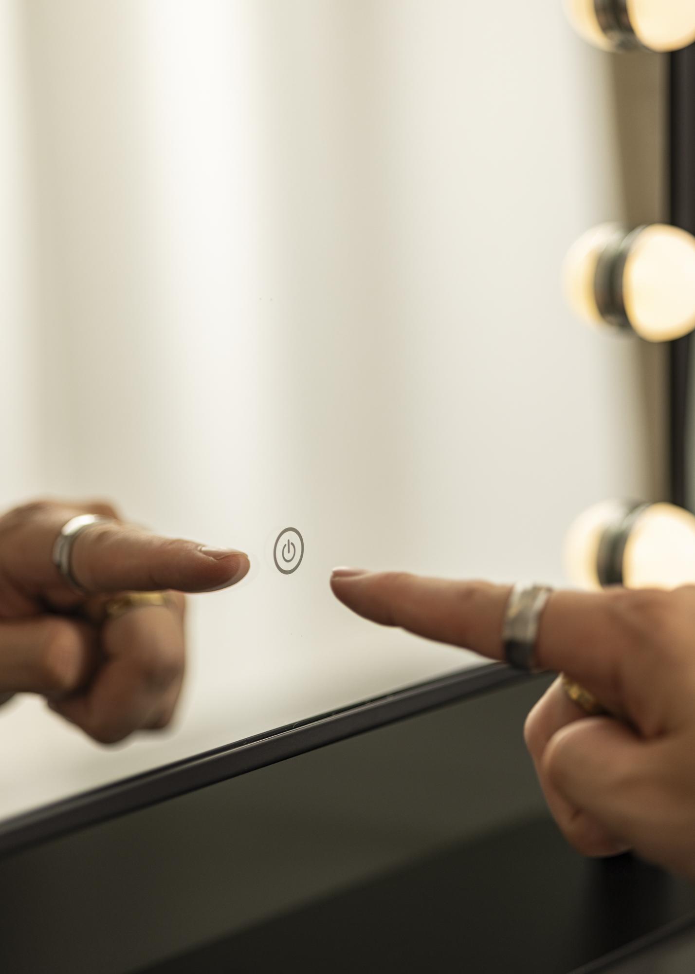 Questo bellissimo specchio per il trucco con 15 lampadine a LED e una grande superficie specchiata è lo specchio perfetto per l'applicazione del trucco! Lo specchio elegante in stile Hollywood è di colore nero e le lampadine a LED incorniciano elegantemente la superficie specchiata. Lo specchio per il trucco può essere in modo da poterti specchiare da diverse angolazioni e riuscire facilmente nel tuo trucco!