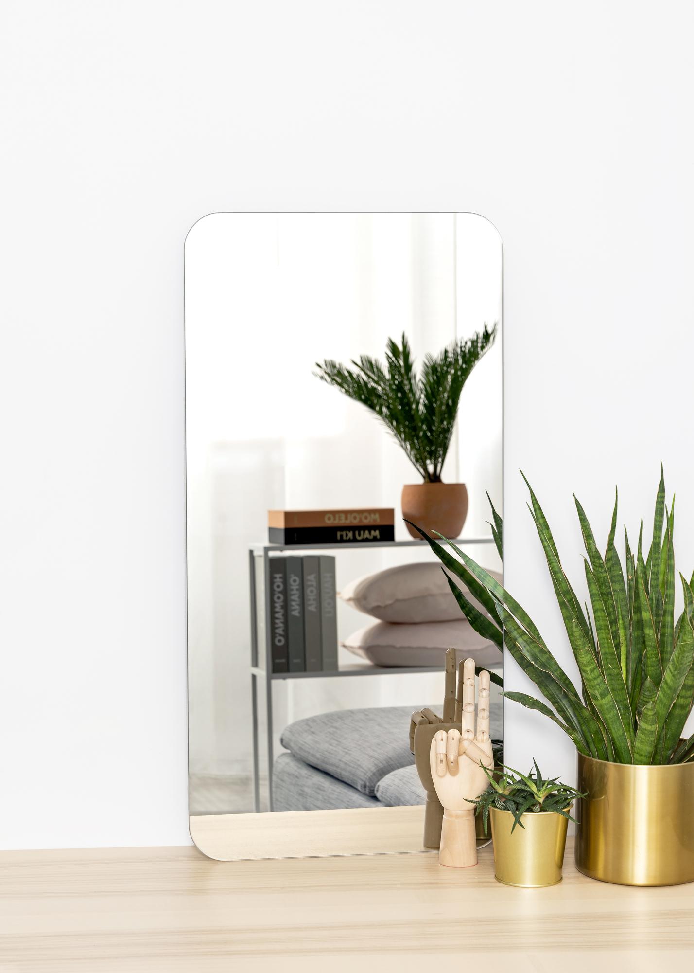 Questo è uno specchio rettangolare con un tocco in più: angoli arrotondati che aggiungono morbidezza ed eleganza nel complesso. Lo specchio è anche molto sottile e non ha una cornice, il che gli conferisce una sensazione minimalista.