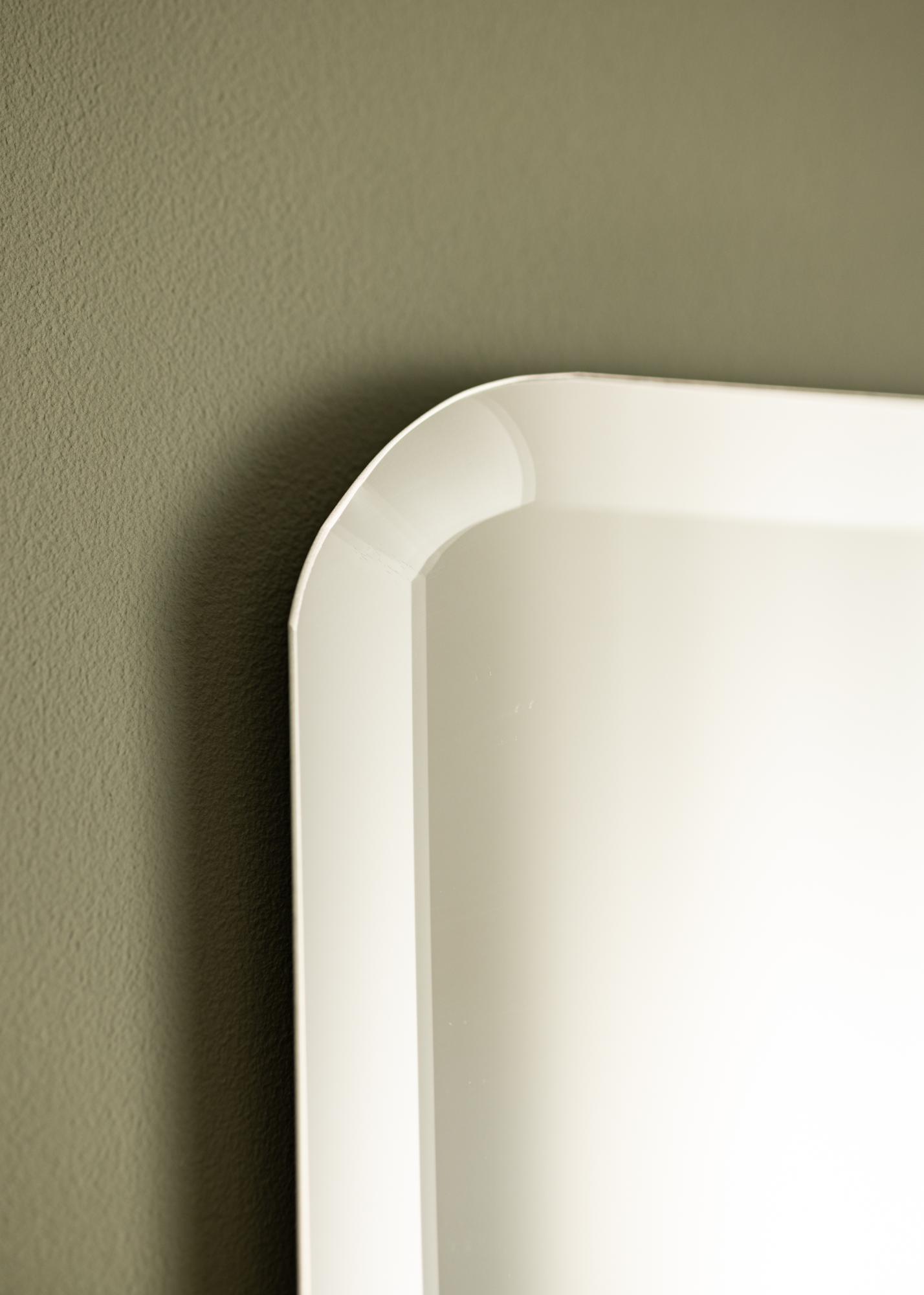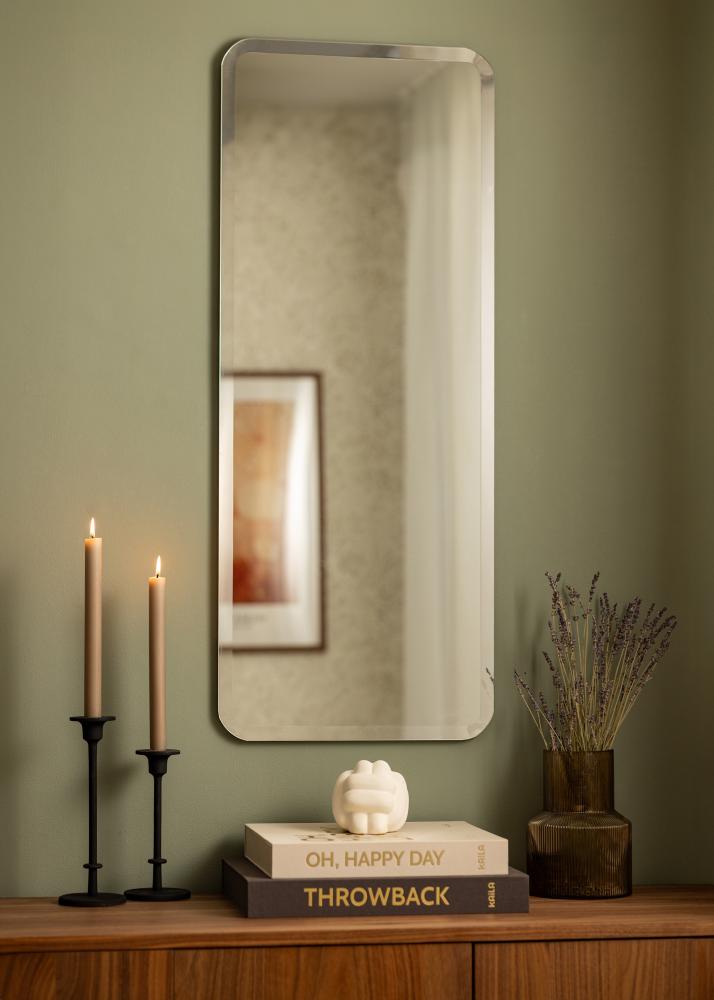 Questo è uno specchio rettangolare di KAILA, con angoli arrotondati. La forma morbida conferisce un'espressione elegante, che viene ulteriormente enfatizzata dalla mancanza della cornice. Lo specchio è di dimensioni 40x100 cm e ha un bordo sfaccettato.