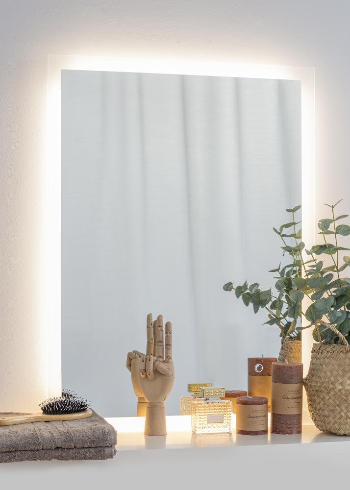 Lo specchio da bagno senza tempo ha solo 3 cm di profondità e misura 60x80 cm. Lo specchio da bagno ha supporti per il montaggio a parete e può essere installato sia in orizzontale che in verticale. Lo specchio è approvato per l'uso in bagno ma è altrettanto adatto come specchio per il trucco. Lo specchio è destinato all'installazione fissa e viene collegato a un interruttore. Per il corretto funzionamento dello specchio, deve essere collegato a un interruttore normale, non a un dimmer.