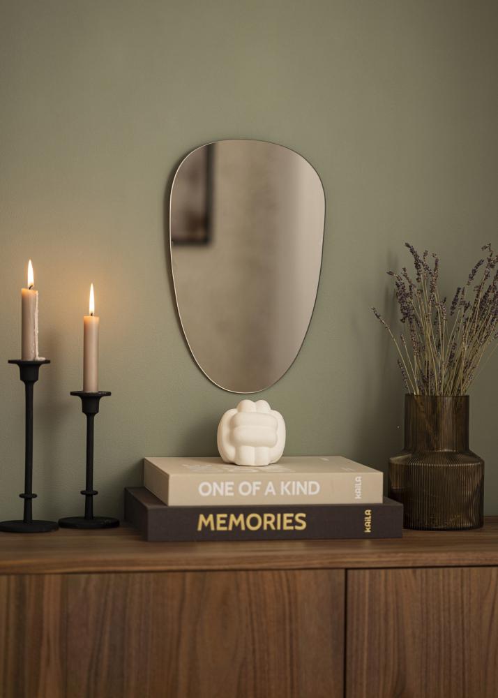 Questo è uno specchio asimmetrico dalle forme morbide e dall'aspetto molto elegante e alla moda. lo specchio è tonalità di un bronzo scuro di classe, che lo rende un dettaglio d'arredo di grande effetto che si abbina facilmente a molti diversi schemi di colori nell'arredamento. Lo specchio è anche molto sottile e non ha una cornice, il che enfatizza ulteriormente la sensazione di stile e tendenza. Posiziona lo specchio nell'ingresso, nel soggiorno, nella camera da letto - o in qualsiasi stanza in cui desideri aggiungere funzionalità ed elegante design nordico!