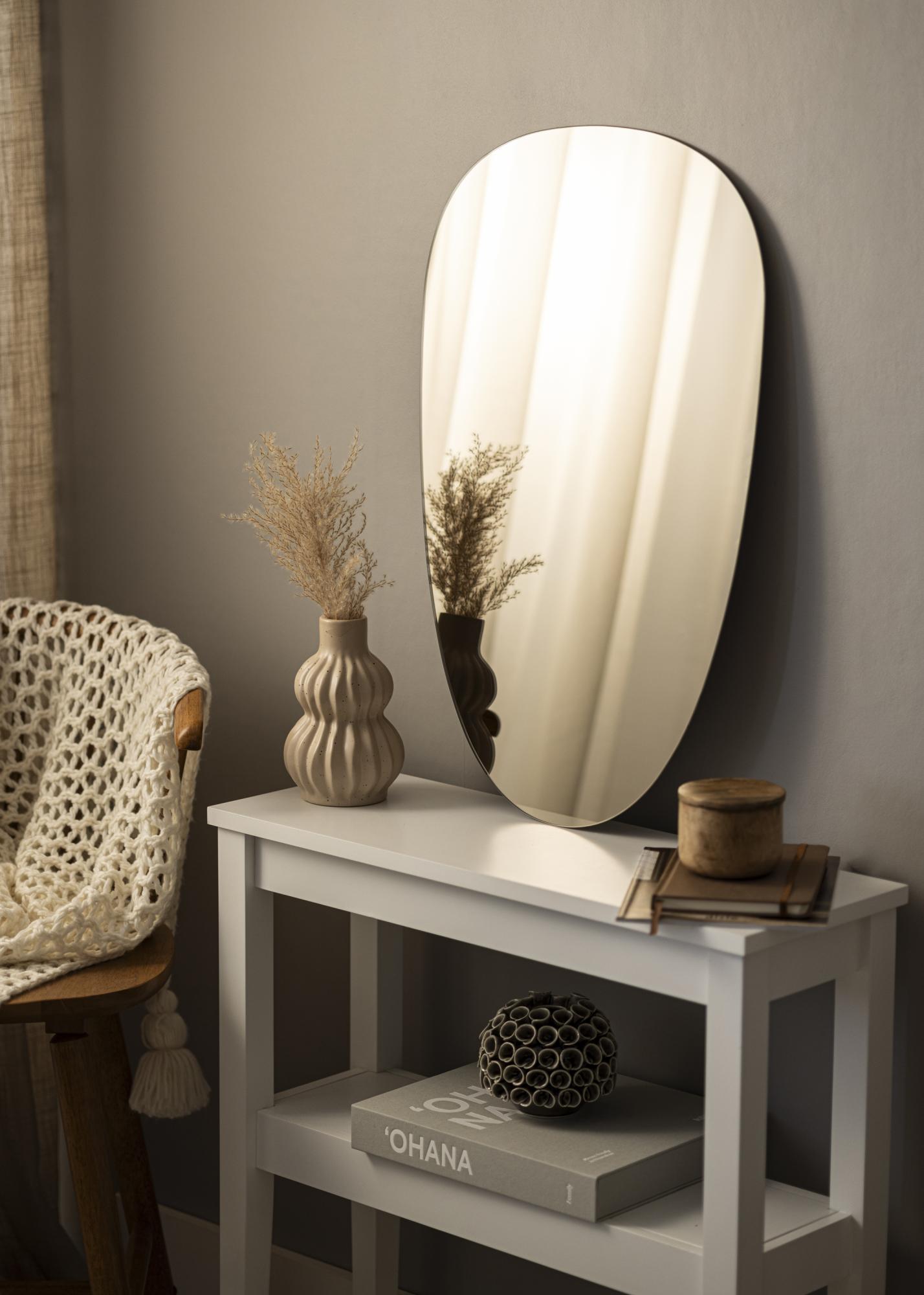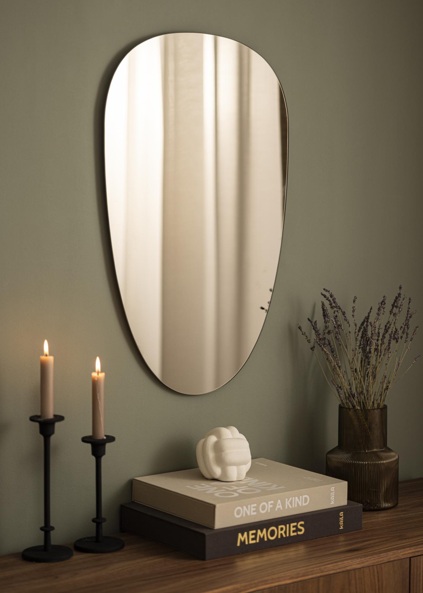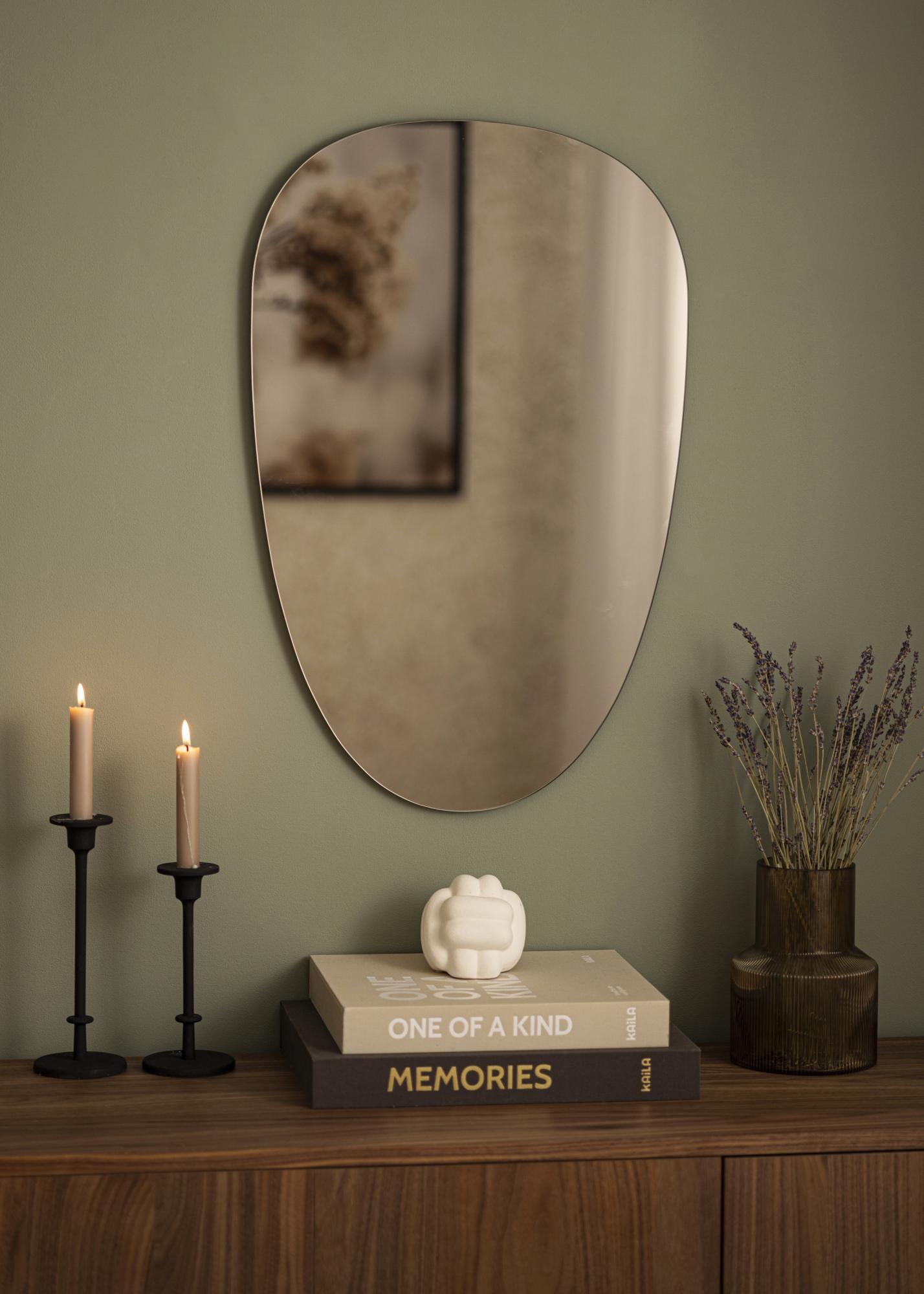 Questo è uno specchio asimmetrico dalle forme morbide e dall'aspetto molto elegante e alla moda. lo specchio è tonalità di un bronzo scuro di classe, che lo rende un dettaglio d'arredo di grande effetto che si abbina facilmente a molti diversi schemi di colori nell'arredamento. Lo specchio è anche molto sottile e non ha una cornice, il che enfatizza ulteriormente la sensazione di stile e tendenza. Posiziona lo specchio nell'ingresso, nel soggiorno, nella camera da letto - o in qualsiasi stanza in cui desideri aggiungere funzionalità ed elegante design nordico!