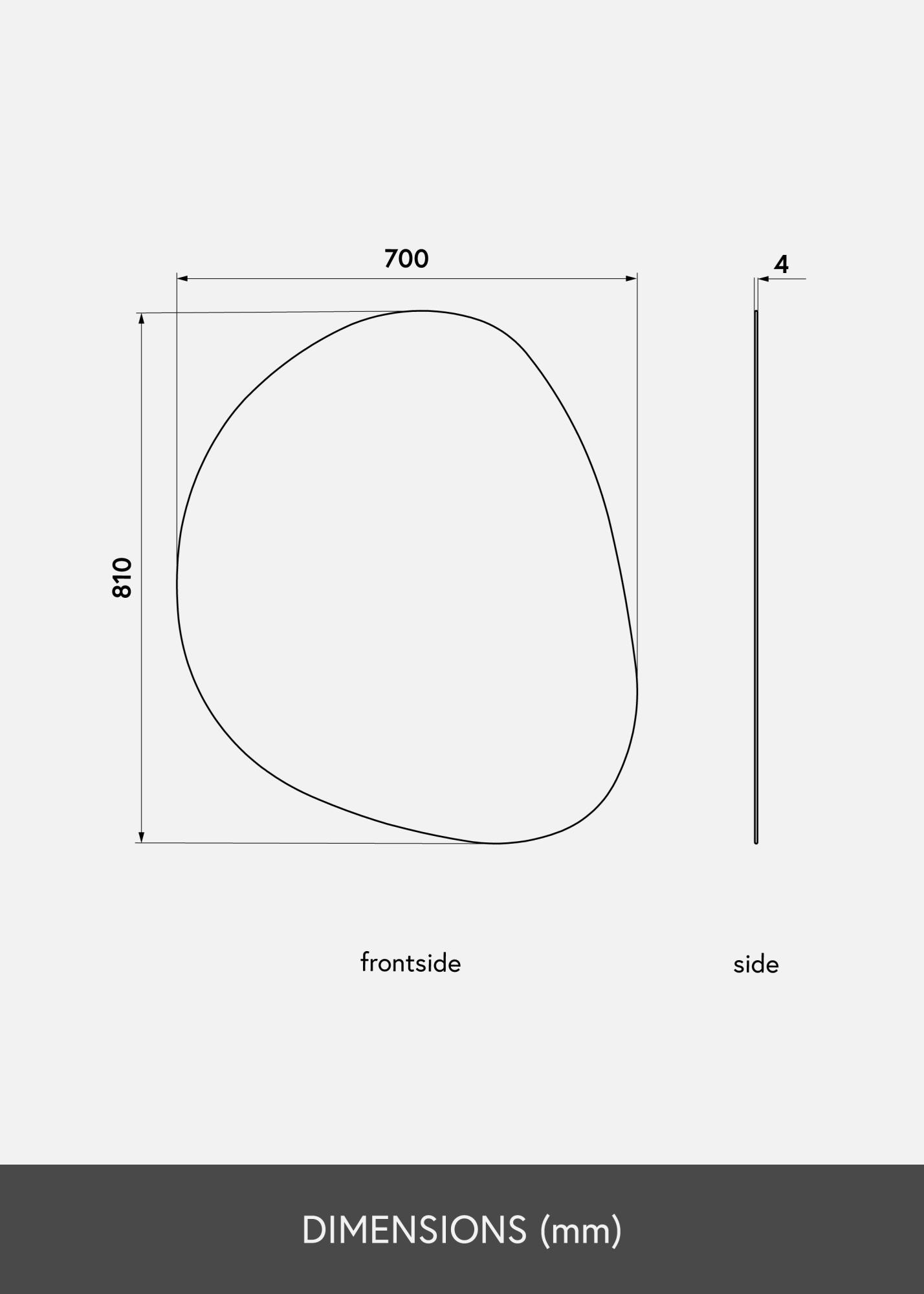 Questo specchio da parete di KAILA ha una forma elegante e asimmetrica che ricorda una goccia. Lo specchio è molto sottile e non ha una cornice, il che, combinato con il bordo lussuosamente sfaccettato, enfatizza ulteriormente l'aspetto elegante e moderno. È uno specchio decorativo che attira l'attenzione ovunque venga posizionato - sia in soggiorno che in ingresso o camera da letto. Lo specchio è di dimensioni 70x81 cm.