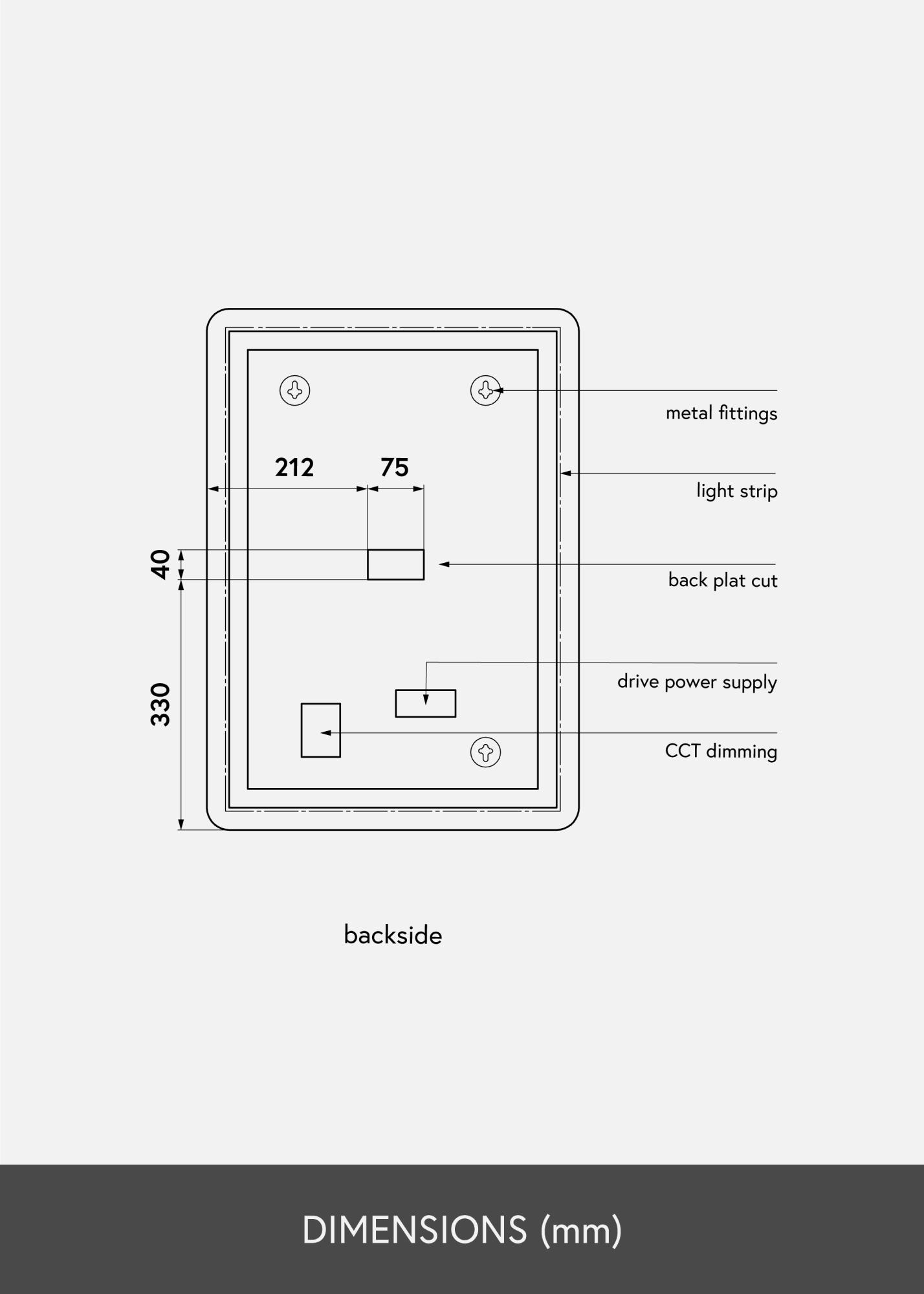 Questo elegante specchio da bagno ha solo 3 cm di profondità e misura 50x70 cm. Lo specchio da bagno ha supporti da parete e può essere montato sia in orizzontale che in verticale. L'illuminazione a LED dimmerabile e i bordi morbidi conferiscono allo specchio una sensazione calda e morbida nell'ambiente in cui viene posizionato. Lo specchio è approvato per l'uso in bagno. Lo specchio da bagno è destinato all'installazione fissa e deve essere collegato a un interruttore. Per il corretto funzionamento dello specchio, deve essere collegato a un interruttore normale, non a un dimmer.