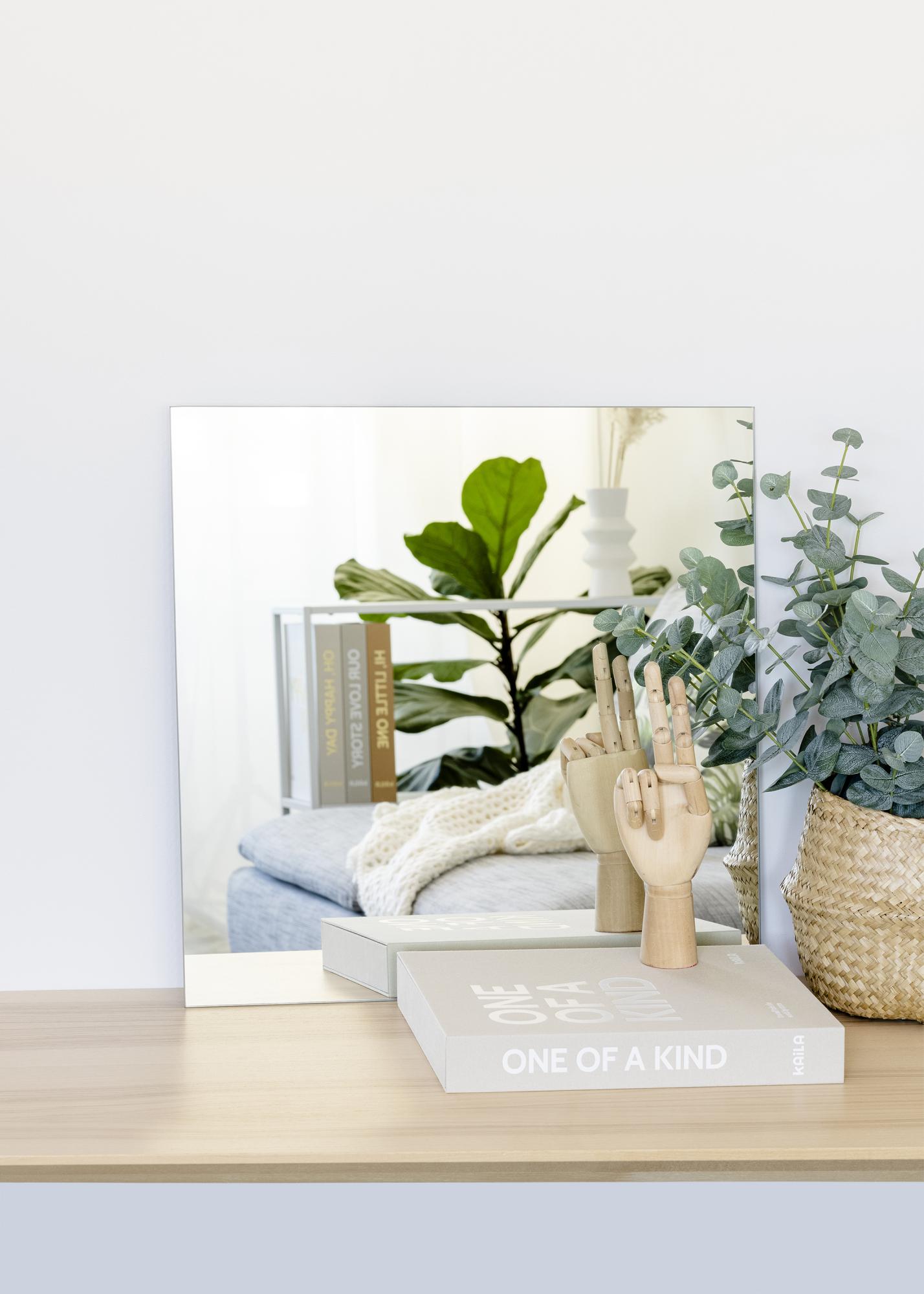 Questo elegante specchio di KAILA ha una forma quadrata classica con angoli netti che conferiscono eleganza ad ogni casa. Lo specchio non è dotato di una cornice, il che gli conferisce un aspetto senza tempo e minimalista. Lo stile senza tempo rende lo specchio un perfetto dettaglio d'arredo per la camera da letto, l'ingresso o il soggiorno. Puoi facilmente appendere lo specchio al muro utilizzando il supporto a parete sul retro. Questo specchio è disponibile in diverse varianti e questa versione ha le dimensioni di 50x50 cm.