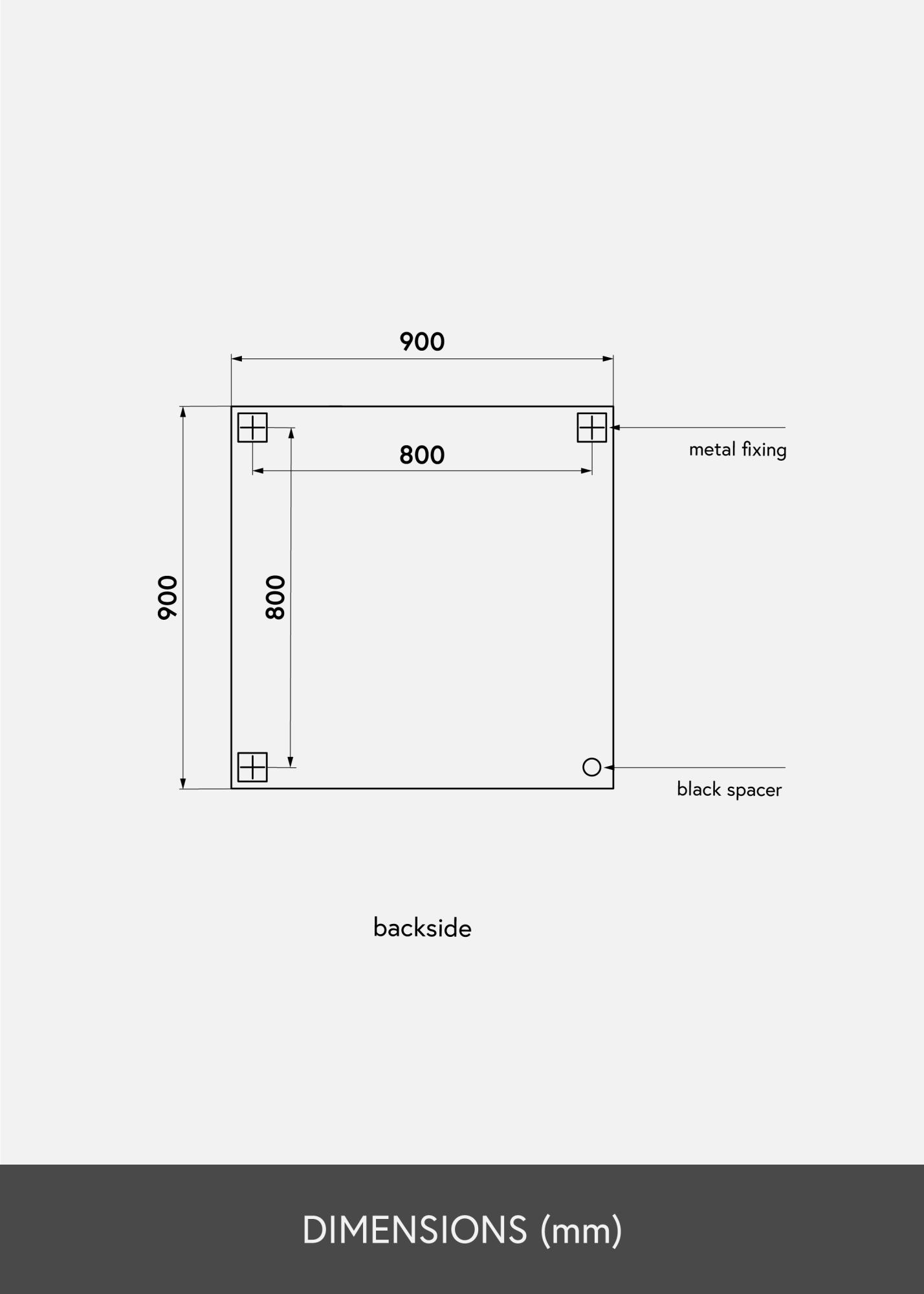 Superficie dello specchio: 90x90 cm