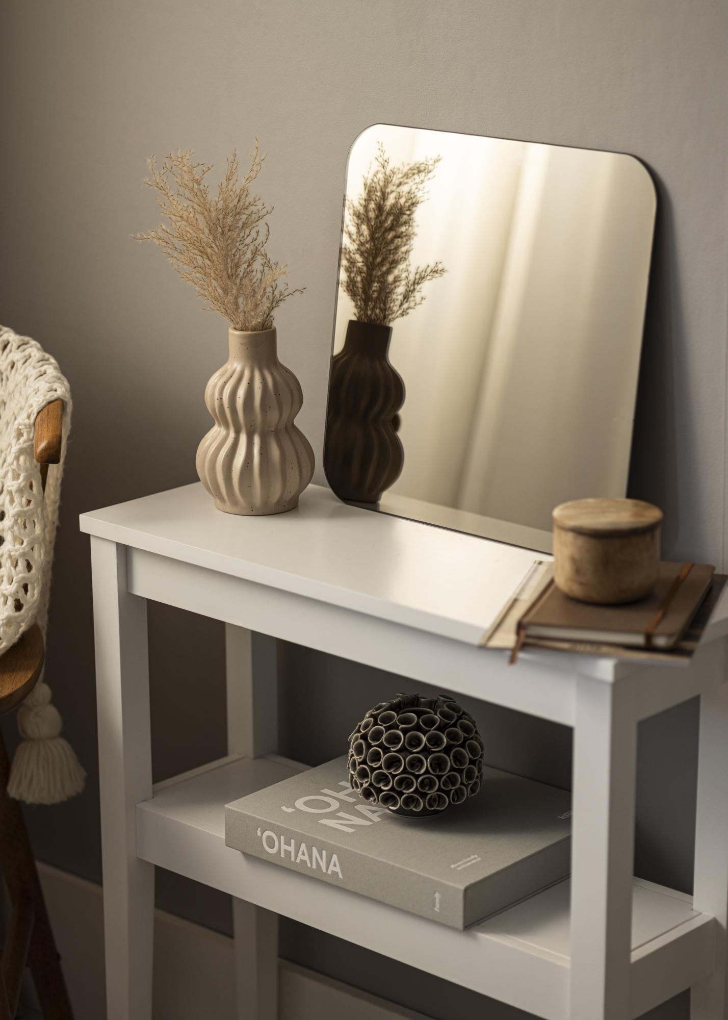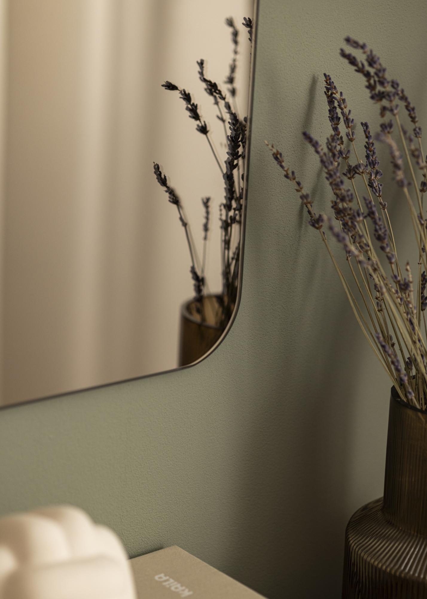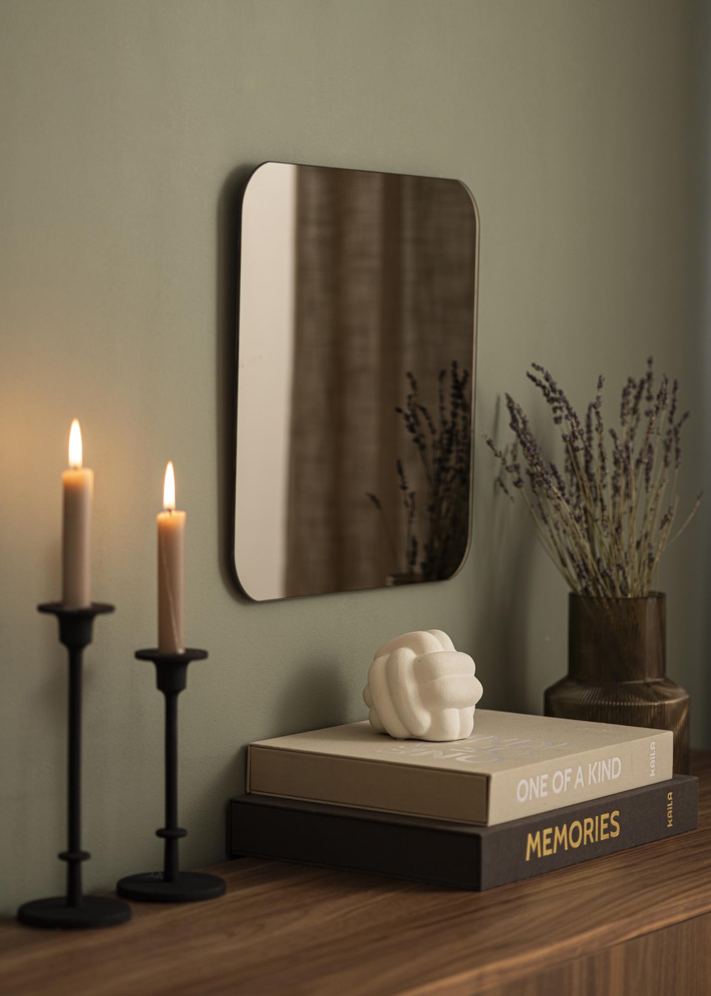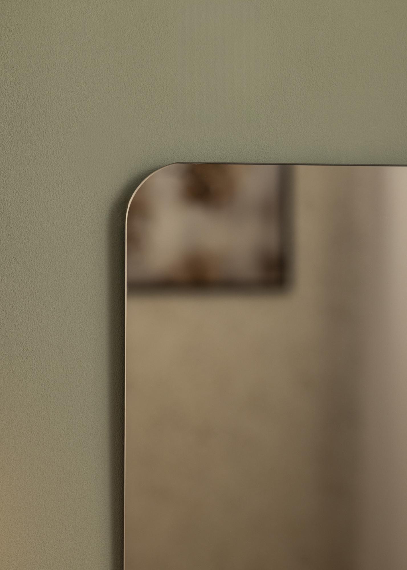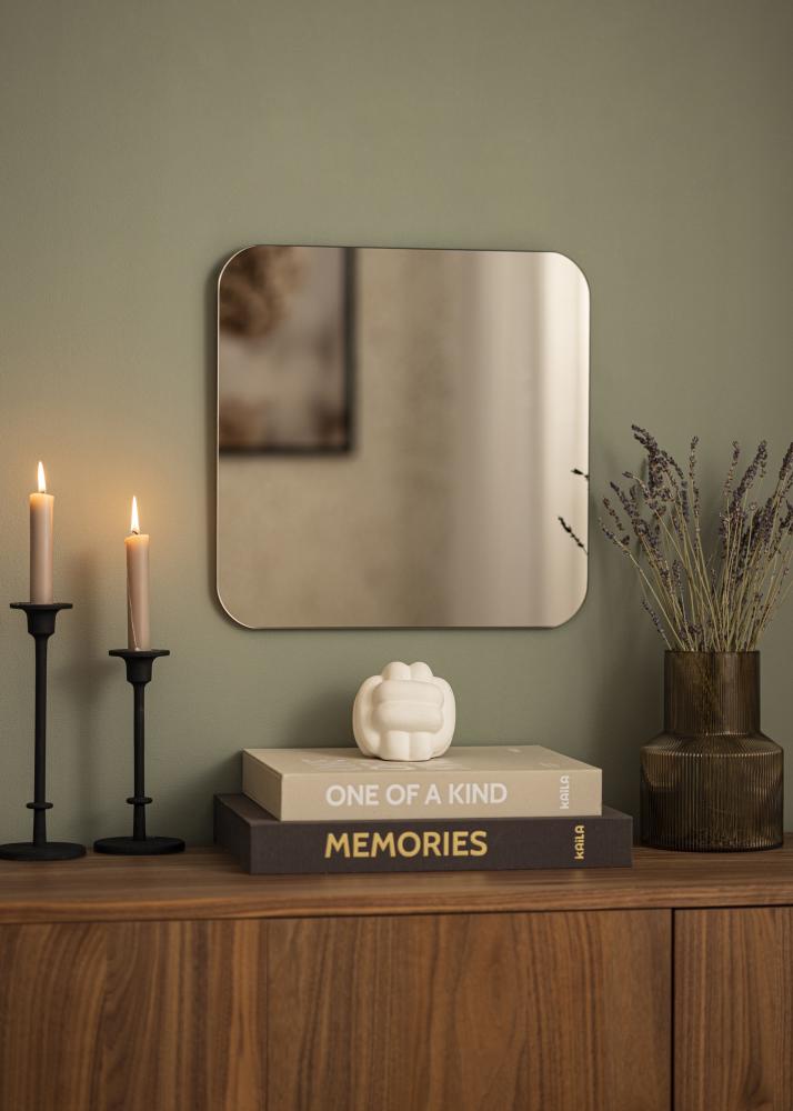 Questo specchio quadrato misura 40x40 cm ed è dotato di angoli arrotondati che ammorbidiscono l'aspetto complessivo e gli conferiscono un'elegante presenza. lo specchio è color bronzo scuro, in uno stile raffinato, rendendo questo specchio un dettaglio d'arredo trendy nella tua casa. Inoltre, questo specchio ha un design molto sottile e non ha una cornice, il che accentua ulteriormente il design moderno dello specchio.