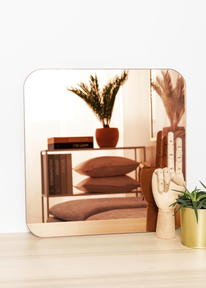 Questo specchio quadrato ha angoli arrotondati che gli conferiscono morbidezza ed eleganza. Lo specchio è anche molto sottile e non è dotato di una cornice, il che gli conferisce un'atmosfera molto trendy e minimalista. Inoltre, lo specchio è tonalizzato in una calda sfumatura di oro rosa, rendendo questo specchio un dettaglio d'arredo davvero elegante e moderno per la tua casa.
