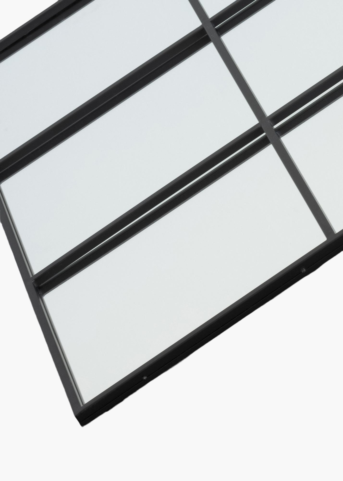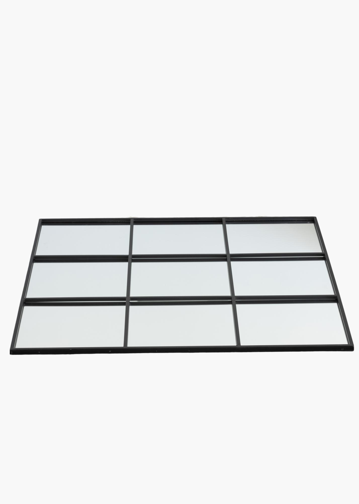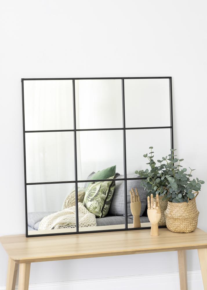 Questo è uno specchio di forma quadrata con un elegante motivo a quadretti. I quadretti sono elegantemente incorniciati da sottili linee nere in metallo che conferiscono a questo specchio da parete un carattere rustico e industriale. La forma quadrata conferisce allo specchio un aspetto più pulito. Posiziona questo specchio ad esempio nell'ingresso, nella cucina o nella camera da letto per creare più spazio nella stanza e allo stesso tempo ottenere un dettaglio decorativo nell'arredamento. Supporto da parete incluso. Lo specchio misura 90x90 cm.