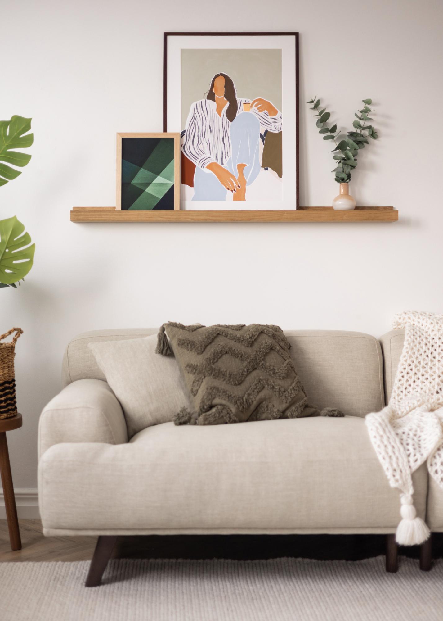 Nota che, essendo la mensola per quadri realizzata in quercia massiccia, possono verificarsi variazioni naturali di colore. La mensola è trattata con un olio protettivo trasparente.