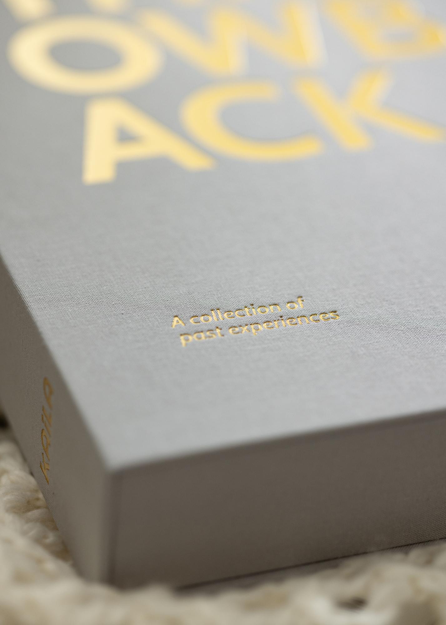 L'album è elegantemente rivestito in tessuto grigio e sulla sua copertina e sulla spina dell'album c'è una stampa dorata con la scritta "THROWBACK". Il titolo dell'album è completato anche dal sottotitolo "Una collezione di esperienze passate" che è stampato nell'angolo in basso a sinistra.
