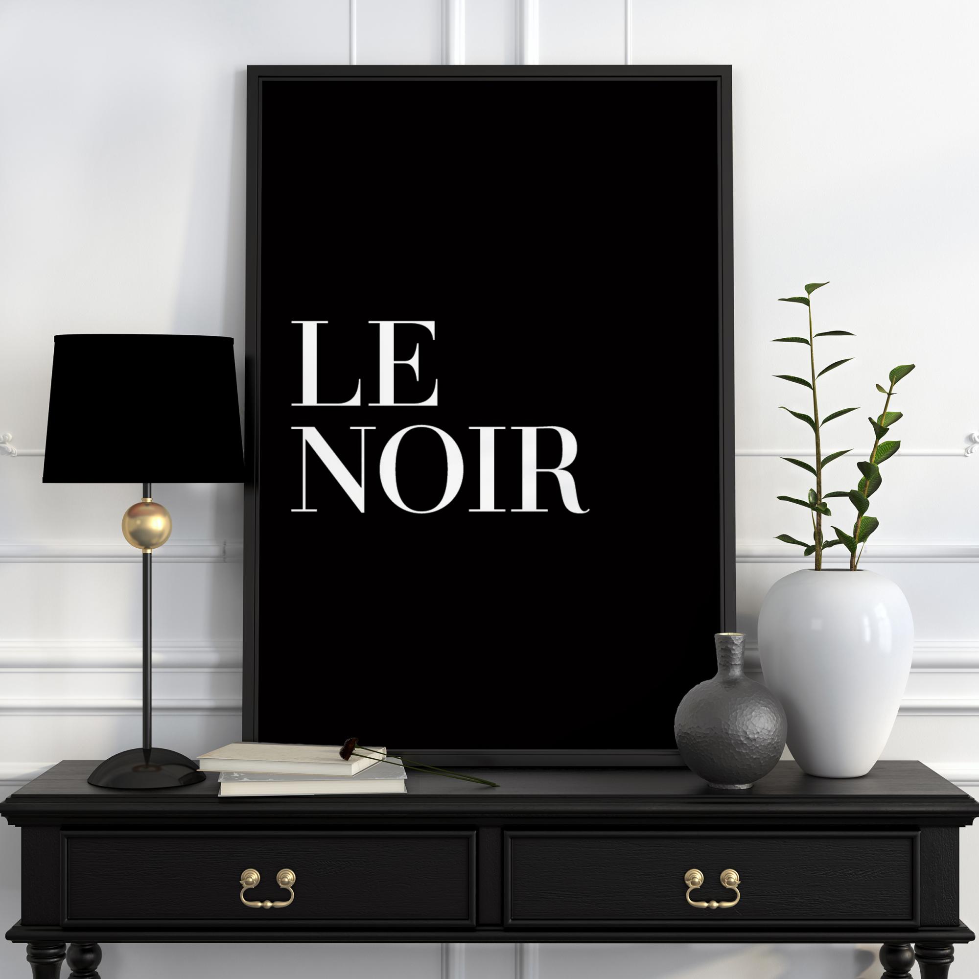 Un poster di testo semplice e minimalista con la scritta "Le Noir", Il Nero, in grandi lettere bianche su sfondo nero. Un poster perfetto da inserire in una grande parete di quadri, magari in combinazione con il poster "Le Blanc", Il Bianco? Completa il tutto con una cornice scelta dal nostro ampio assortimento.