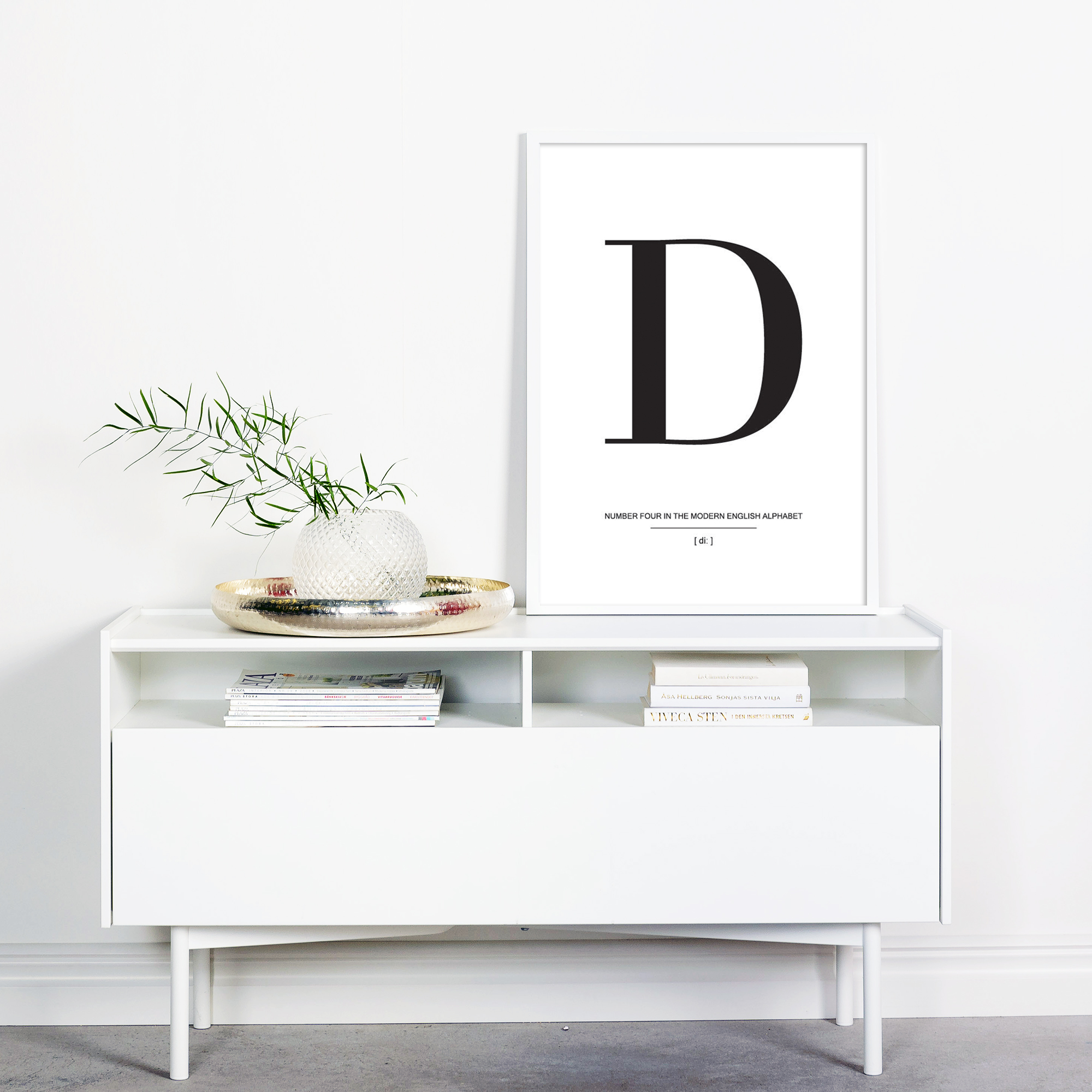Nella semplicità risiede la bellezza, e questo è pienamente dimostrato da questo elegante poster con la lettera D in nero su sfondo bianco. L'affiche presenta una tipografia raffinata e dovrebbe essere completata con altre affiche di lettere della stessa serie per creare una parete di quadri trendy e bella. Scegli i tuoi poster preferiti con lettere e scegli tra la nostra vasta gamma di cornici di qualità, poi lascia che la fantasia prenda vita sulle pareti di casa.