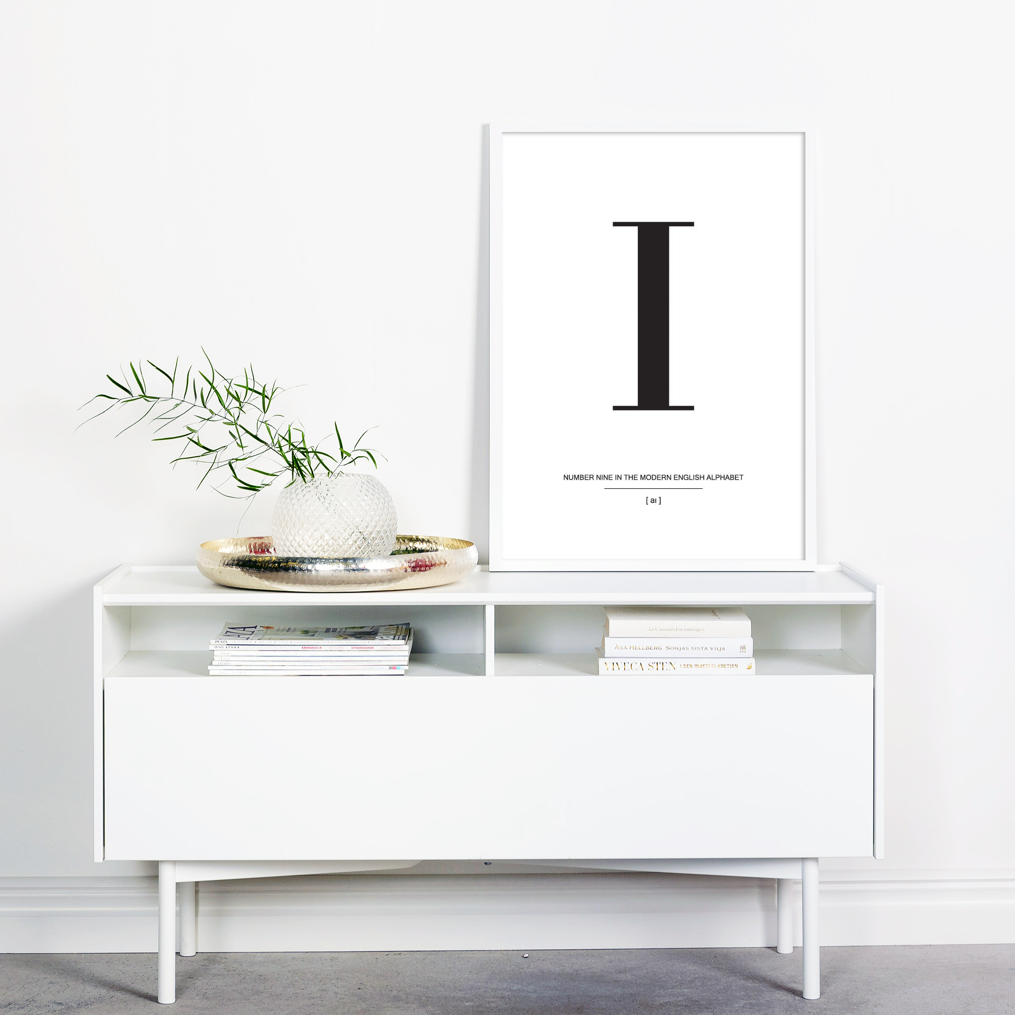 Nella semplicità risiede la bellezza, e questo è pienamente dimostrato da questo elegante poster con la lettera I in nero su sfondo bianco. L'affiche presenta una tipografia raffinata e dovrebbe essere completata con altre affiche di lettere della stessa serie per creare una parete di quadri trendy e bella. Scegli i tuoi poster preferiti con lettere e scegli tra la nostra vasta gamma di cornici di qualità, poi lascia che la fantasia prenda vita sulle pareti di casa.