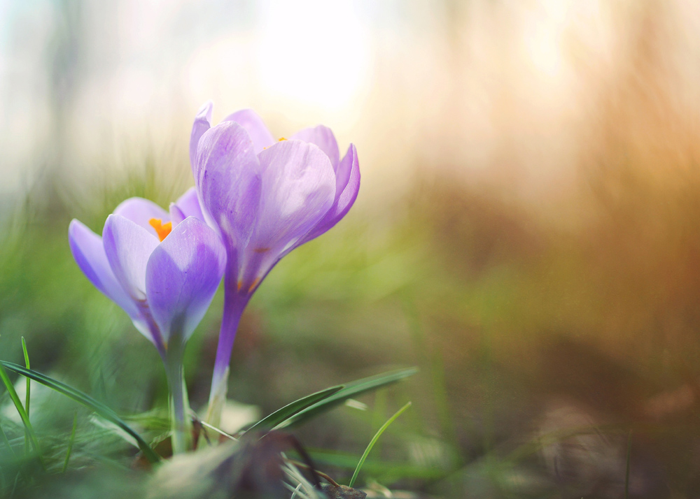 Un'incantevole immagine del forse più vivace amante del sole della primavera, il crocus. Lo sfondo sfocato in un colore complementare dà un tocco alle fioriture e armonia alla fotografia. Perfetto per chi desidera gioia di colore in casa e è sempre bello utilizzare una tonalità dal quadro come colore di accentuazione nell'arredamento. Si consiglia di combinare con altri motivi vegetali per creare un senso di completezza nella stanza.