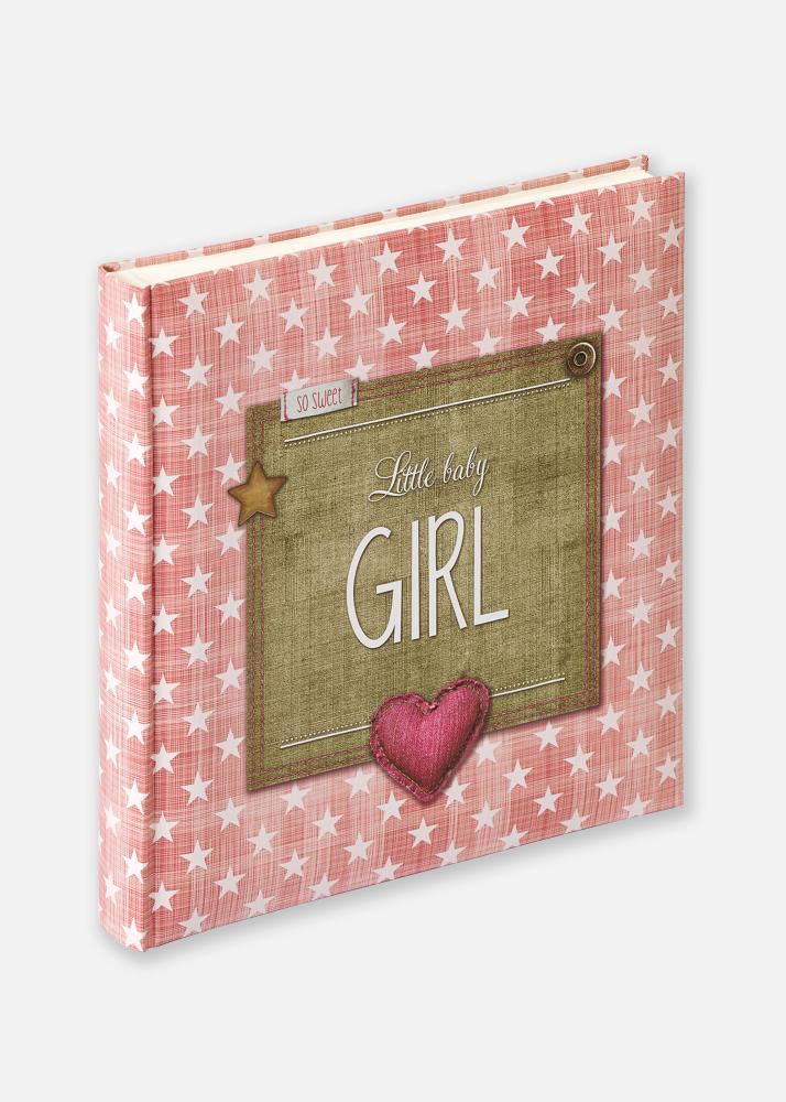 Album per bambini con il testo "Little baby Girl" sulla copertina dell'album. La copertina dell'album è decorata con tante piccole stelle che conferiscono all'album un carattere grazioso e accogliente.