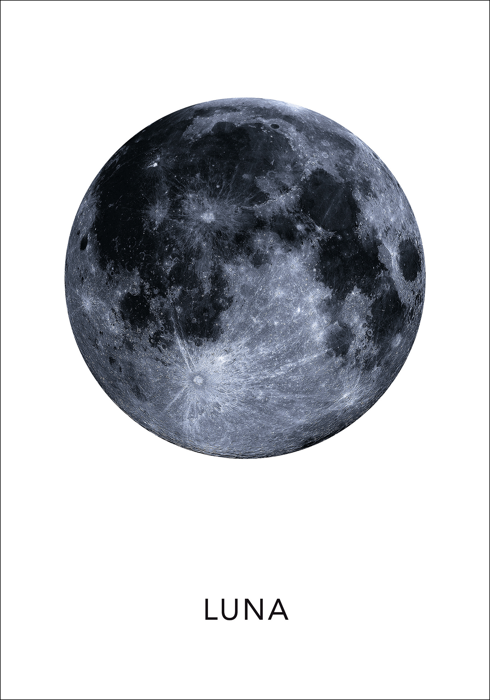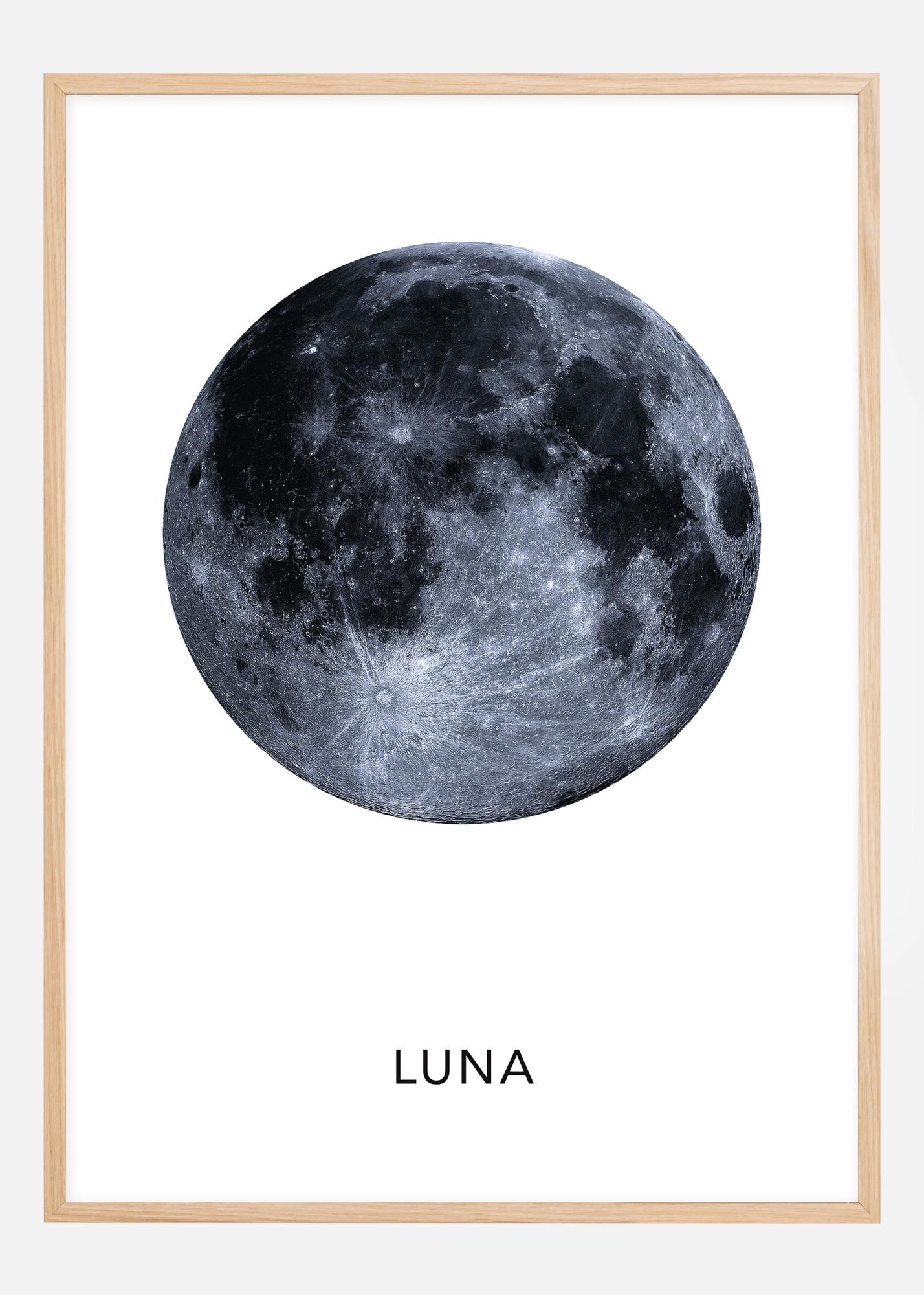 Osserva il mondo intorno a te e vedrai che le opere d'arte più belle sono qui, naturalmente, per il tuo piacere. Qui abbiamo la meravigliosa stampa della Luna insieme al suo nome latino, Luna.