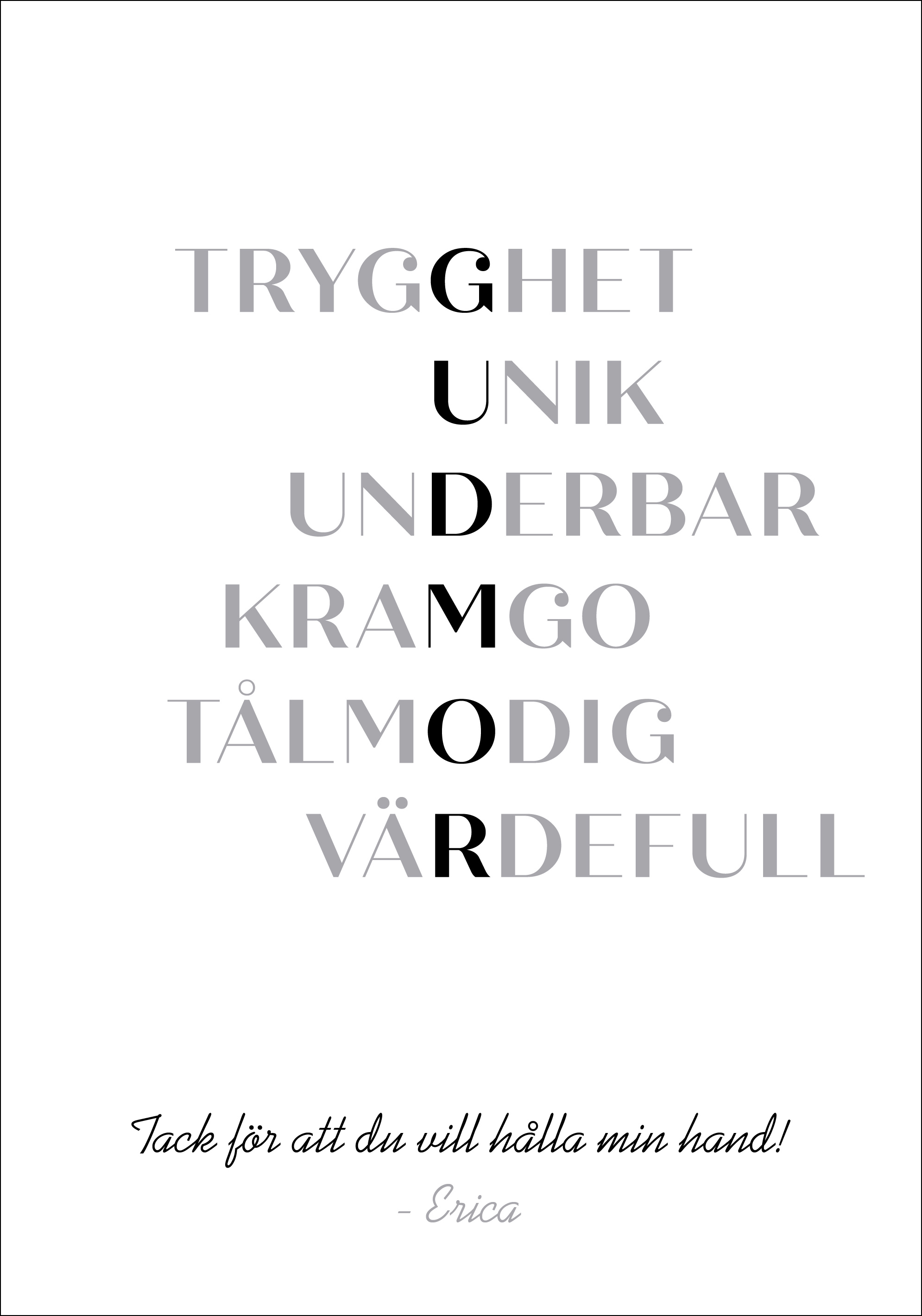Un poster personale è un regalo unico e divertente, sia da dare che da ricevere, e diventa un bel ricordo che verrà custodito a lungo. Devi solo compilare i campi sopra con le informazioni che desideri includere, così creeremo il tuo poster personale! La cornice non è inclusa, ma può essere ordinata separatamente.