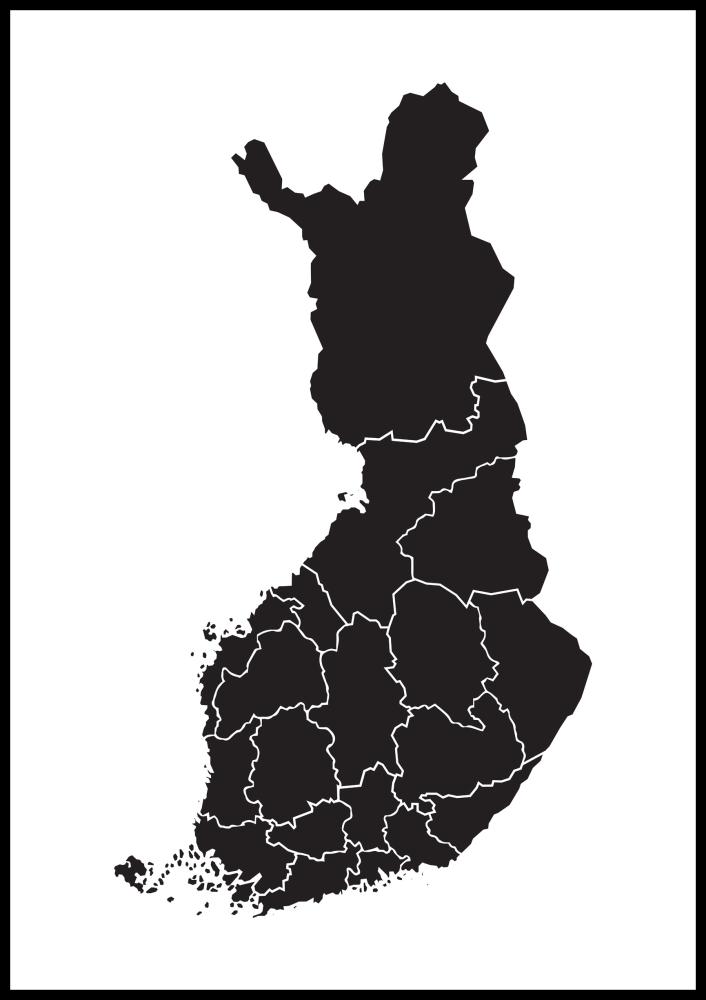 Nella semplicità risiede l'eleganza. Qui c'è una mappa poster della Finlandia stampata in bianco e nero. I paesaggi sono stati dipinti con linee bianche che creano forti contrasti con il nero, qualcosa che davvero mette in risalto la mappa dalla parete. Aggiungi una cornice elegante e avrai il regalo perfetto.
