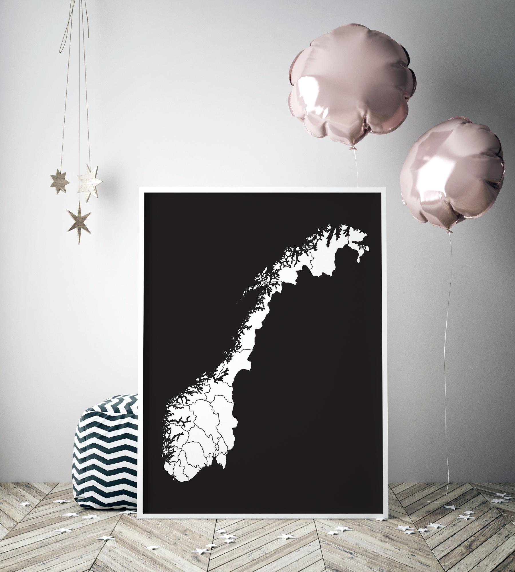 Lascia che i tuoi sentimenti caldi per la Norvegia si riflettano nel tuo interno! Qui abbiamo una bella mappa grafica del paese che renderà la parete bella! La mappa è disponibile nei colori blu, grigio, verde, rosa, nero con sfondo bianco, bianco con sfondo nero e arcobaleno. Scegli tra 8 diverse dimensioni e completa con una cornice abbinata!