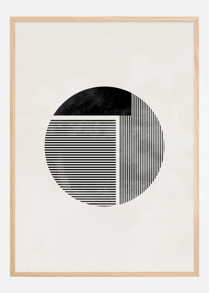 Questo elegante e minimalista poster è uno studio nel contrasto e nella semplicità, che mostra un semicerchio diviso in bianco e nero con motivi striati. Il motivo astratto è una composizione attentamente bilanciata di forme geometriche e linee, che crea un effetto visivo immediato. Quest'opera d'arte è un omaggio al sottile e sofisticato, offrendo un'estetica senza tempo che si adatta a qualsiasi casa o ufficio moderno.