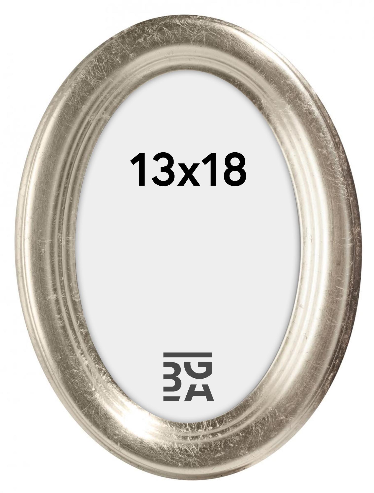 Classica cornice ovale in legno con un profilo argentato delizioso, perfetta quando cerchi una cornice per ritratti di alta qualità che sia anche prodotta in Italia.
