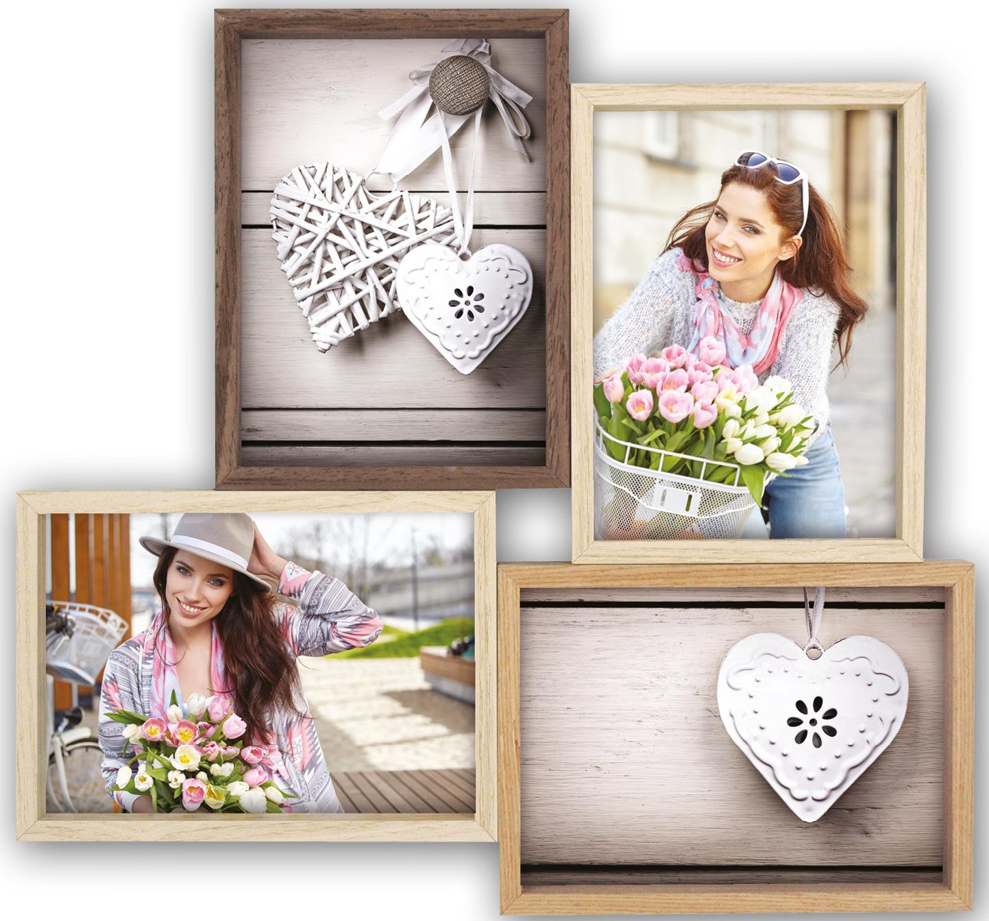Ogni immagine nella cornice collage può avere una dimensione di 10x15 cm, che è una dimensione comune per le fotografie. La cornice è realizzata in legno, che conferisce una sensazione naturale e senza tempo che si adatta alla maggior parte delle case.