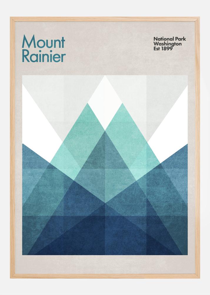 Lo stile è minimalista e moderno, enfatizzando la maestosità di Mount Rainier attraverso forme geometriche e una sottile palette di colori. Perfetto per gli amanti della natura e gli appassionati di design grafico, questo poster sarebbe una decorazione murale sofisticata in una casa o ufficio contemporaneo. La cornice (non inclusa) dovrebbe essere semplice per non distogliere l'attenzione dalle linee pulite e dai colori rilassanti dell'opera d'arte.