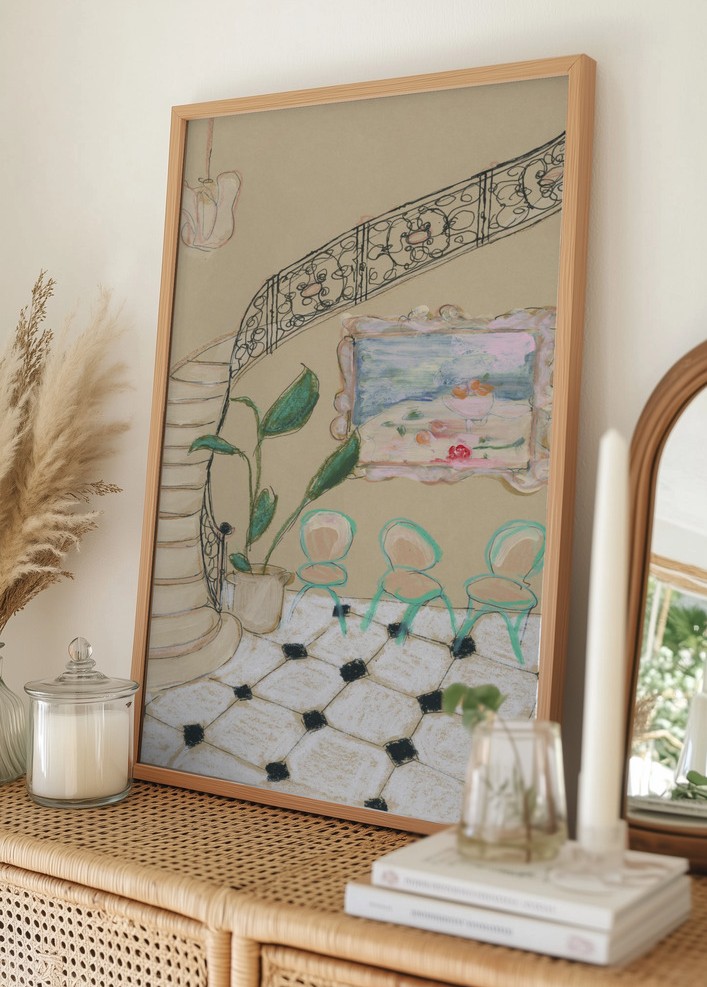 Poster alla moda che si abbinano ad altri motivi per creare una moderna galleria a parete.